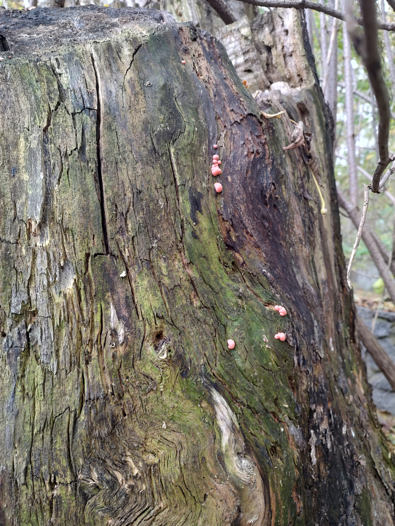 Ликогала древесинная является разновидностью плесени, паразитирует на мертвой гниющей древесине, старых пнях и так далее.
