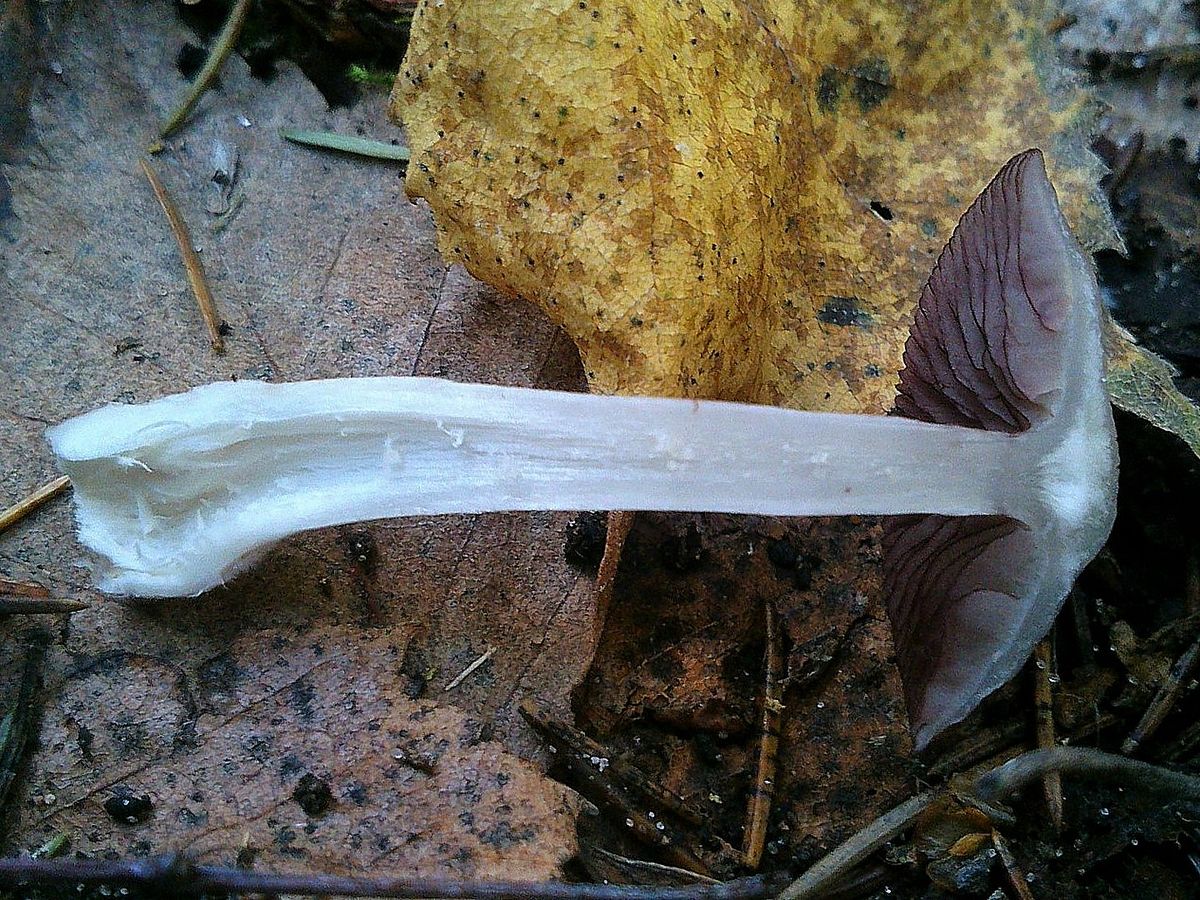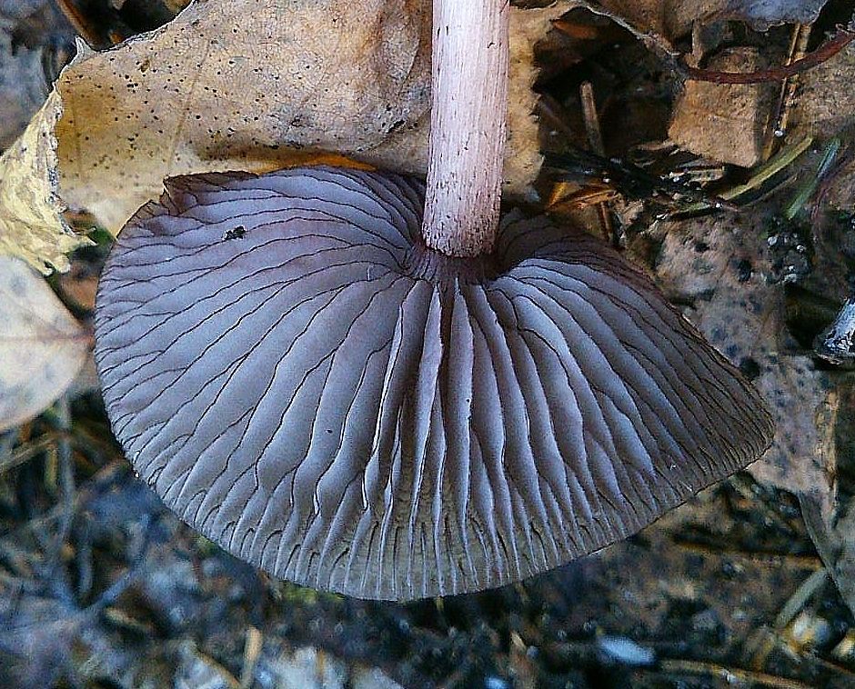 - Вид: Mycena pelianthina (Мицена лиловоцветная)