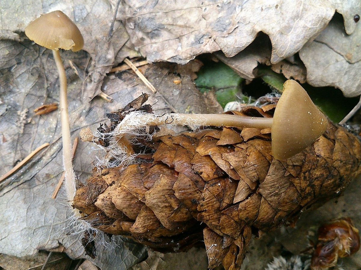 - Вид: Mycena strobilicola (Мицена шишколюбивая)