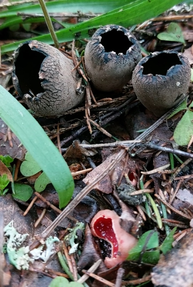 Чуть позже лес стал красоваться австрийскими Саркосцифами, которые ещё называют чашой эльфа. Хочу заметить, что вопреки описаниям, австрийская Саркосцифа имеет хорошо ощущаемый грибной аромат с едва уловимым запахом редиски.