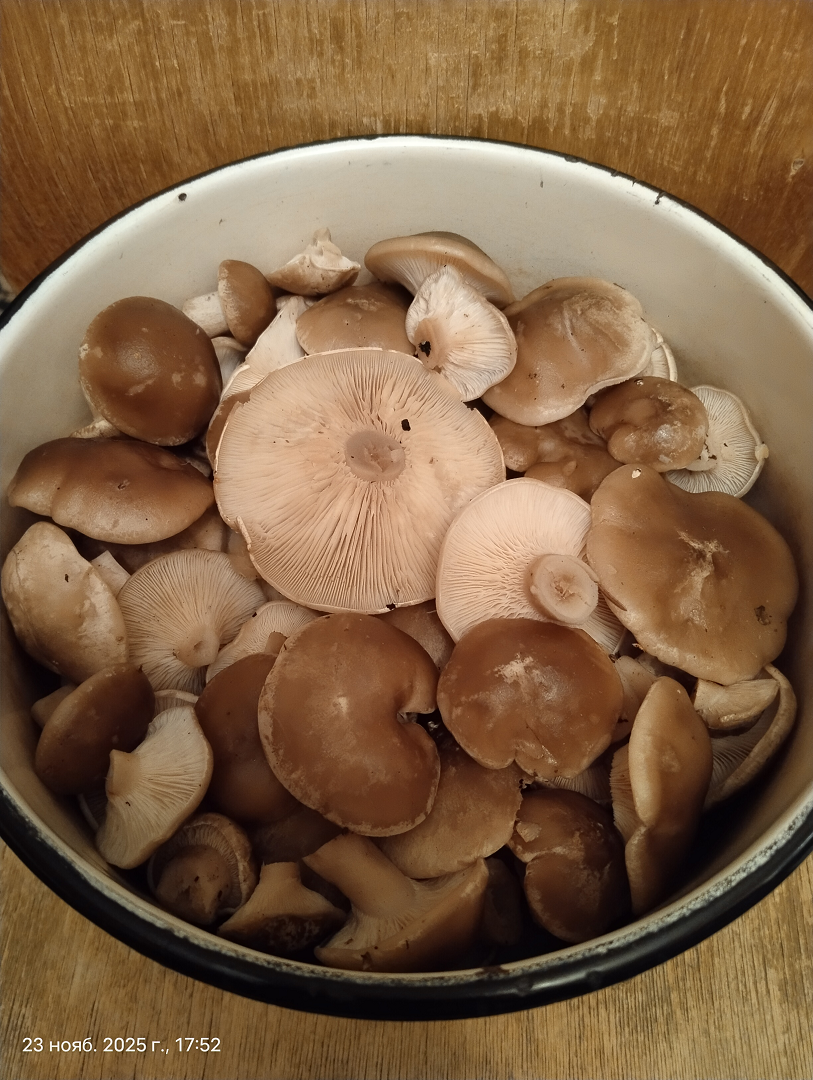 С другой стороны, по двум последним фото видно, что в объёме дымчатые говорушки уменьшились очень сильно — где-то в 3-4 раза. И, по-моему, именно об этом люди говорят, когда удивляются сильному увариванию дымок.