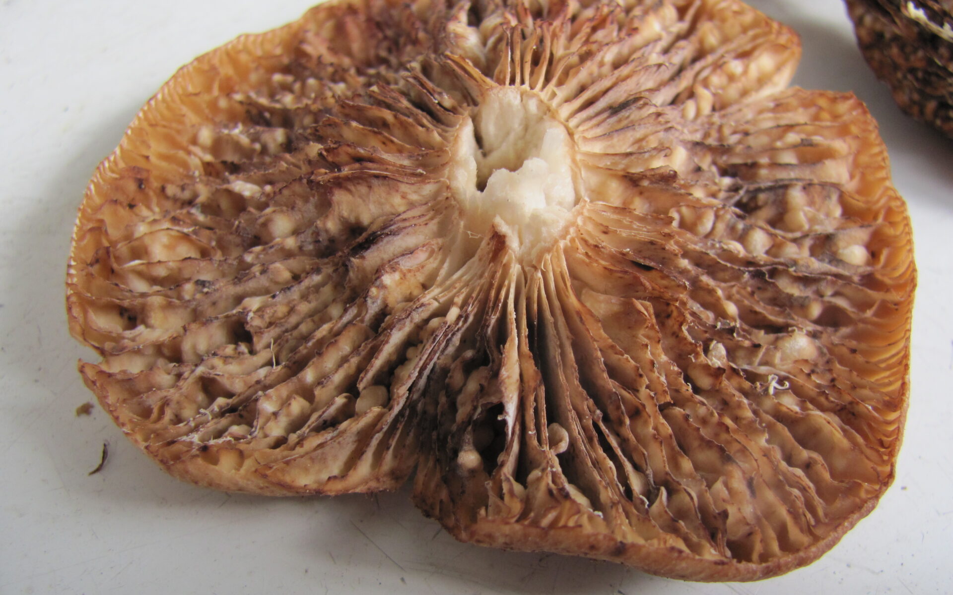 Из всех вариантов которые сейчас нашёл больше подходит Hypomyces tremellicola. Он, как раз выступает на пластинках в виде белой плотной массы и очень похоже пластинки крутит и забивает пространство между ними. Одна проблема, опята не его типичный хозяин. Он паразитирует на плеуротоидных грибах (например, вёшенки и крепидоты). Это его типичные и наиболее частые хозяева. Но есть нюансы. Американский миколог Майкл Куо (Michael Kuo). В статье «The Genus Hypomyces» пишет:Хозяин — плеуротоидный гриб (без ножки) — как правило, виды Crepidotus или Pleurotus…»Некоторые виды в этом ключе не всегда настолько специфичны к хозяину, как я их представил. Hypomyces aurantius и Hypomyces tremellicola, в частности, были задокументированы на самом широком разнообразии грибов (включая дрожалковые грибы, лисички и вороночники, и другие)…»