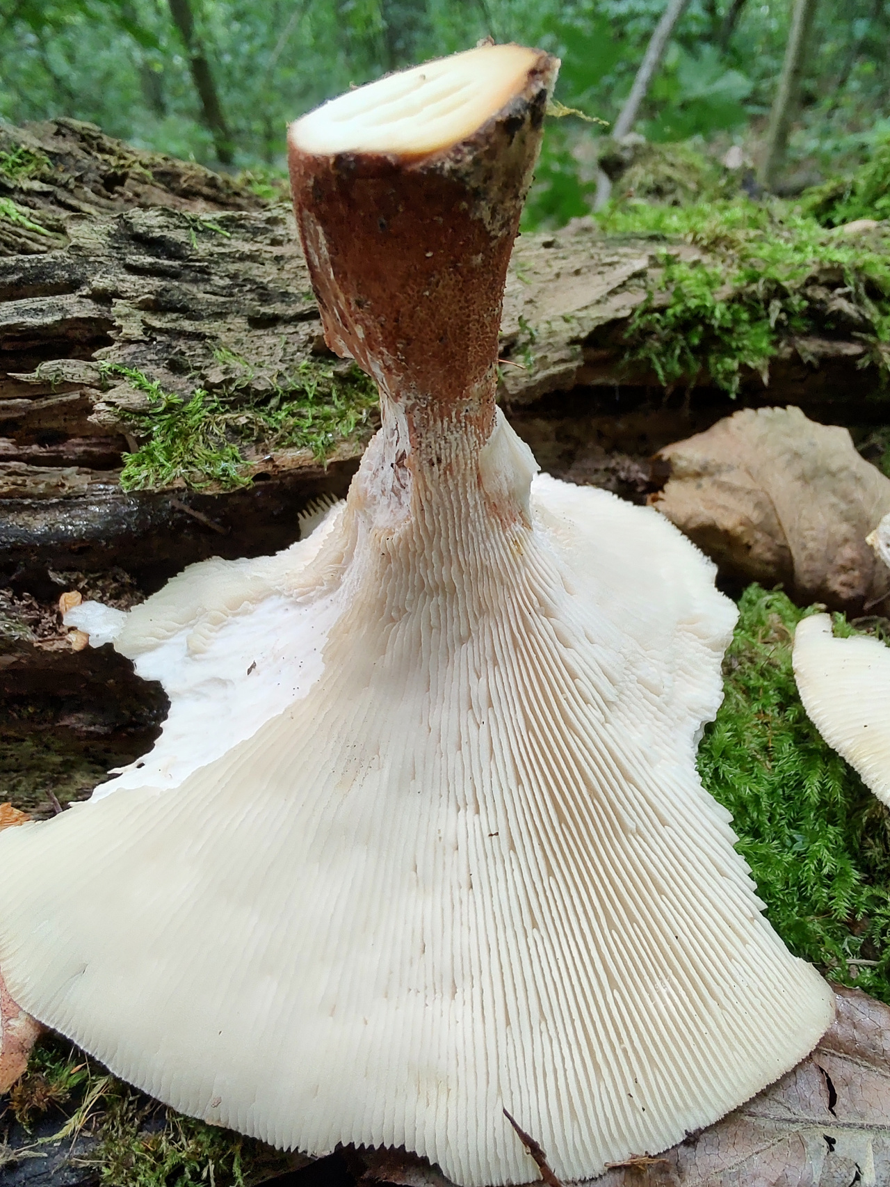Я обнаружил несколько колоний этих удивительных грибов 14 июня 2003 года, в березовом лесу, старом и тихом. Кажется, это первый «пластинчатый» гриб, который мне не удалось разломить одной рукой. И двумя руками не удалось — пришлось скручивать и рвать. Разумеется, это не могло не вызвать уважения. Я твердо решил выяснить, как же называется эта моя находка.