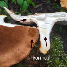 Ответ нашелся лишь спустя полтора года. Знающие люди надоумили меня поискать среди пилолистников, в качестве ориентира указав на Lentinus cyathiformis. Далеко ходить не пришлось: он и есть.