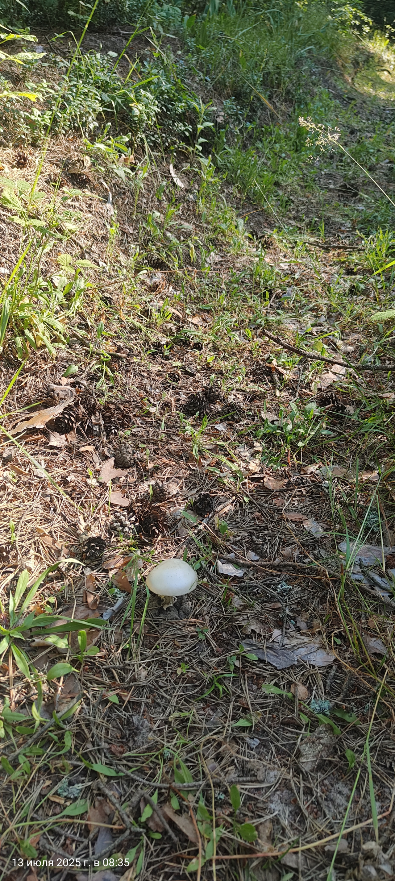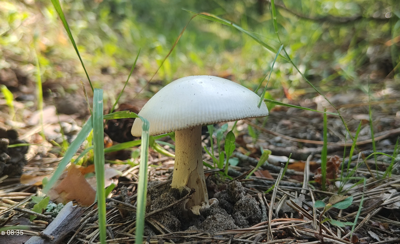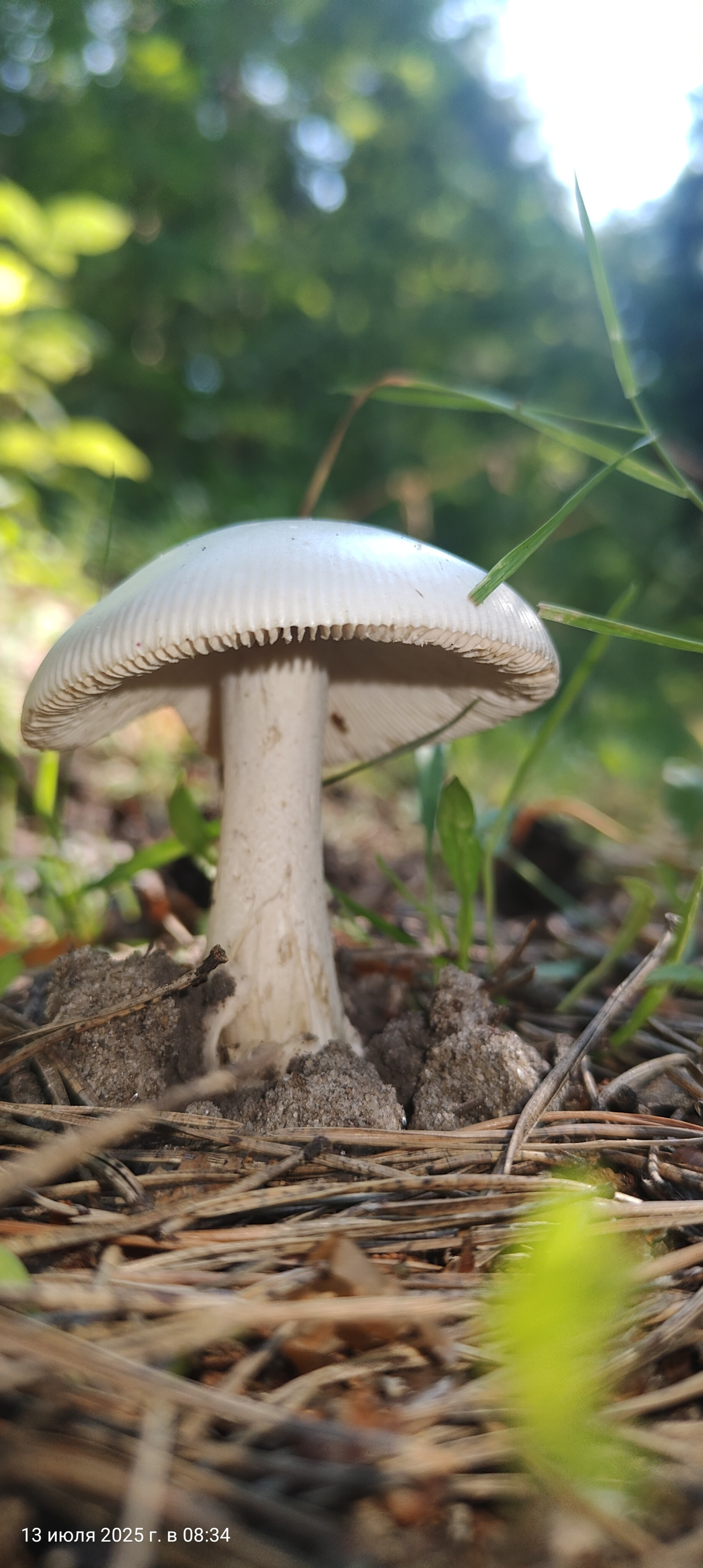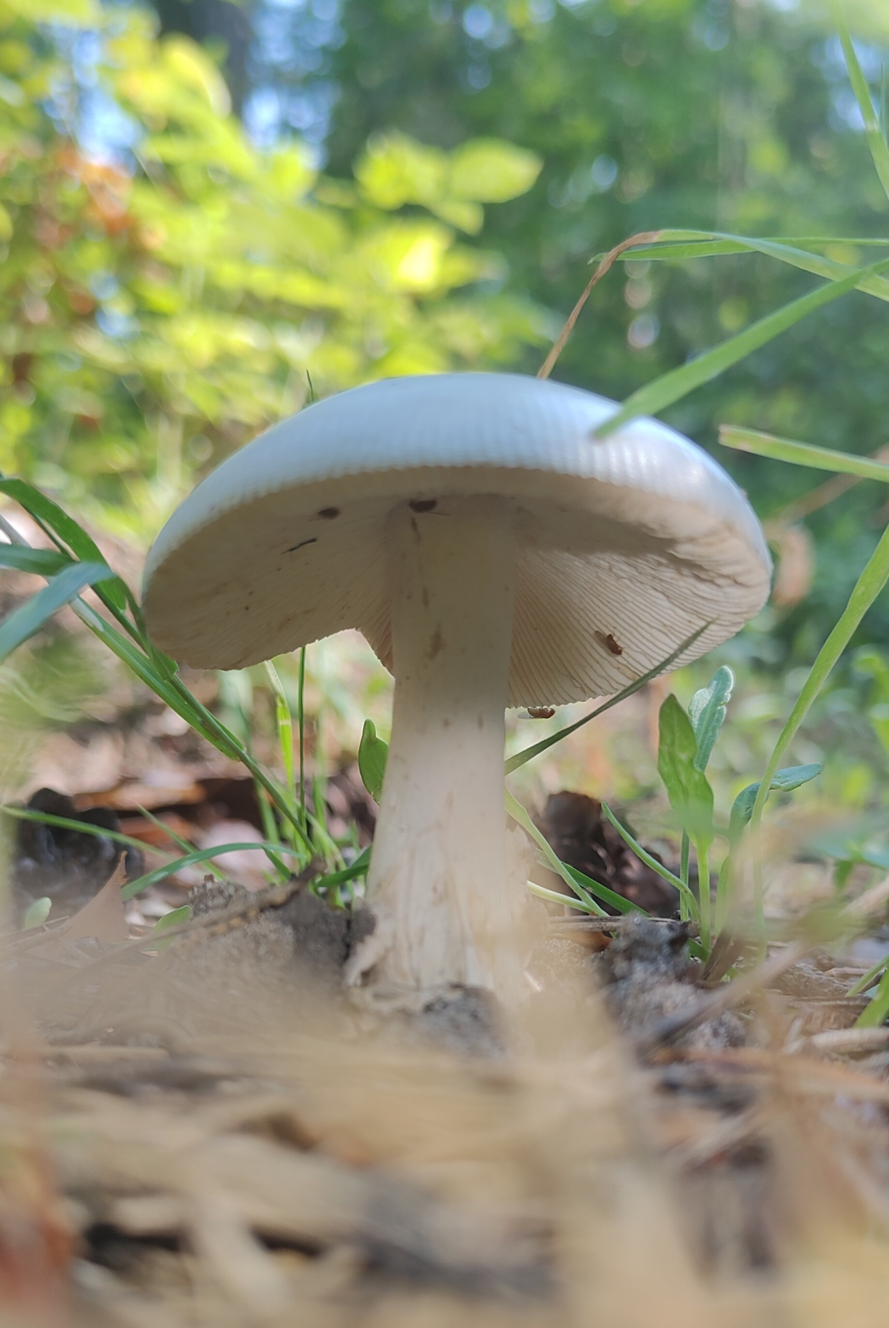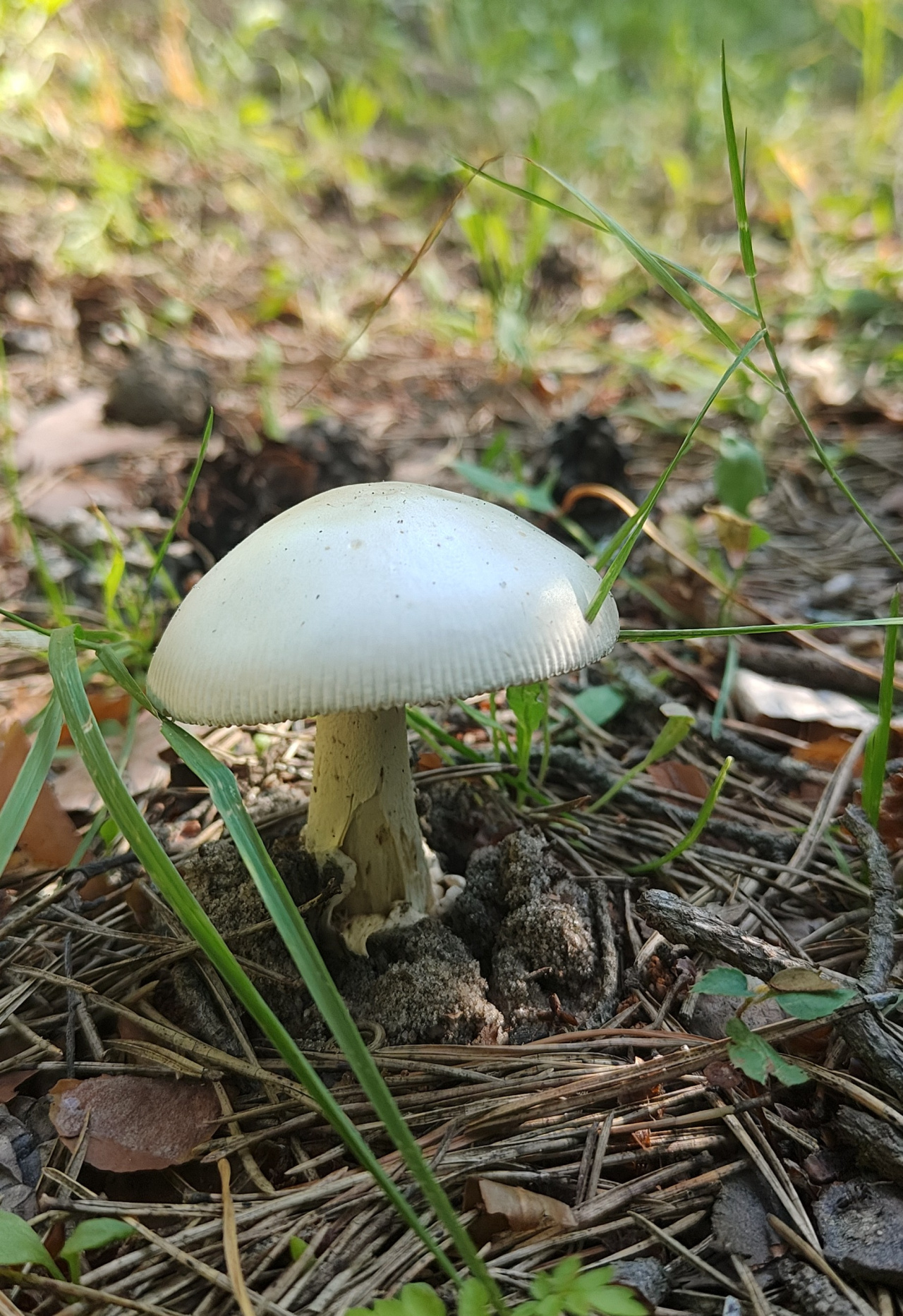 По виду чисто как другой поплавок, только белый. Рос одиночно. Брать на всякий пожарный не стал, тем паче, что неподалёку белых мухоморов хватало, хотя другие поплавки собираю