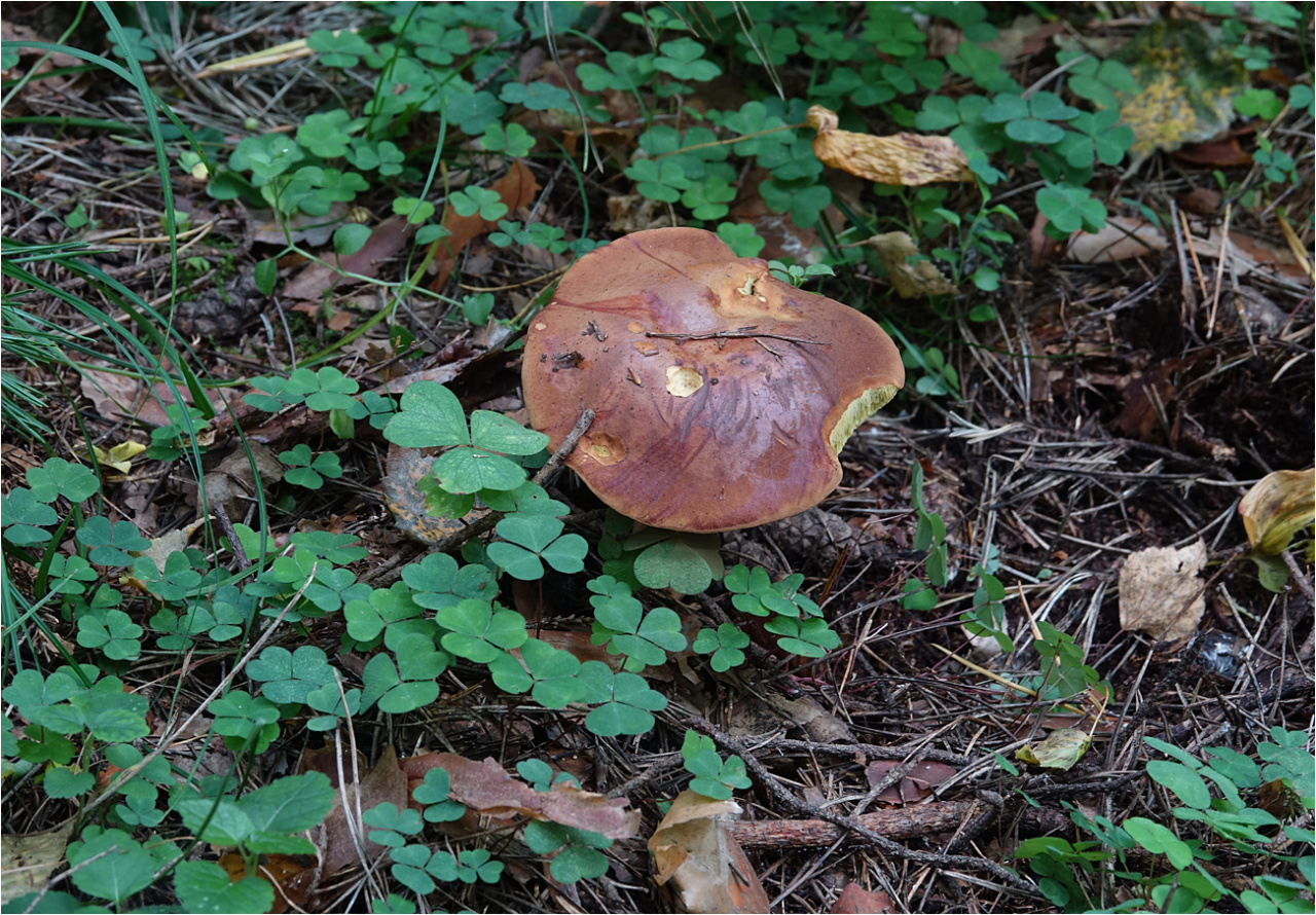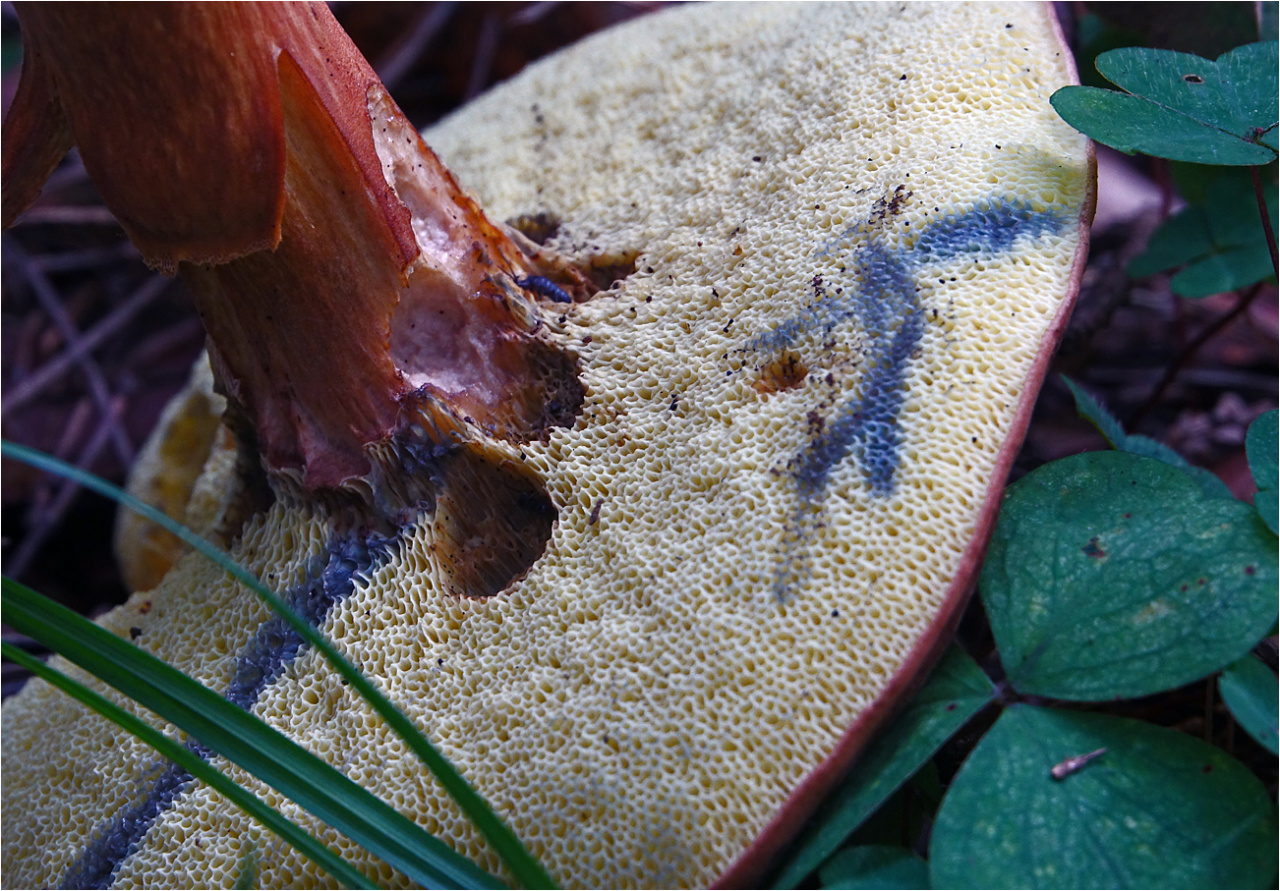 Описание гриба: Гриб небольшой,Похож на белый,но на срезе синеет.Лес смешанный.Темнеет после надавливания.