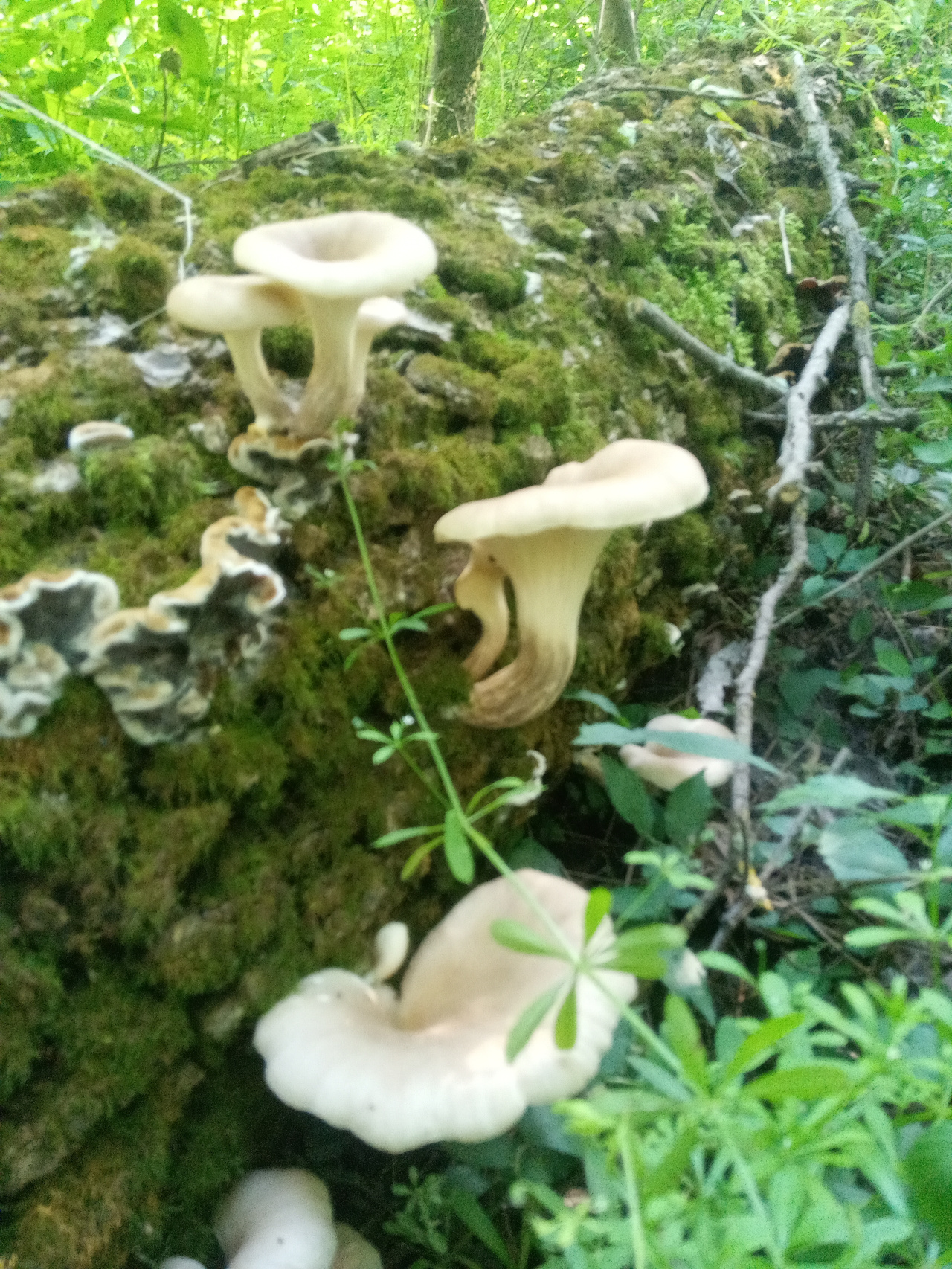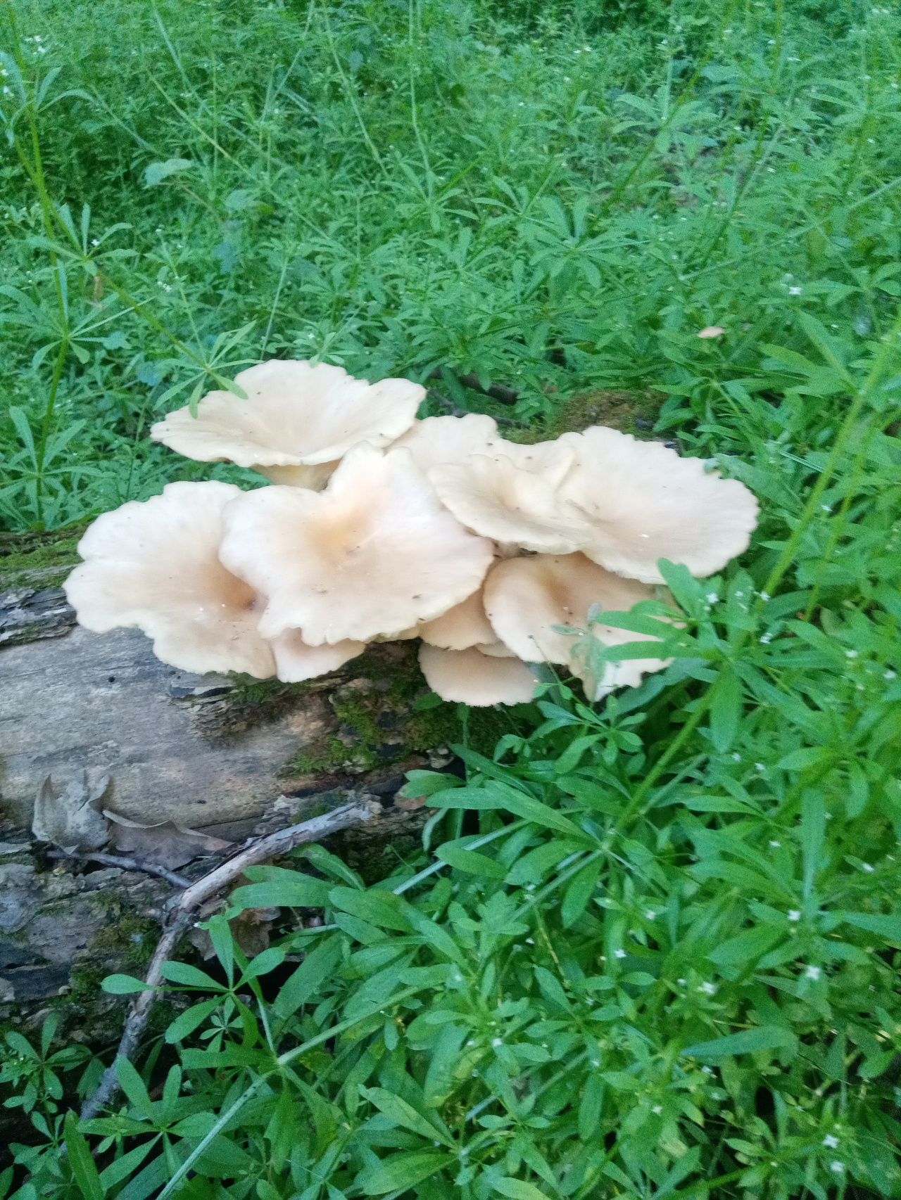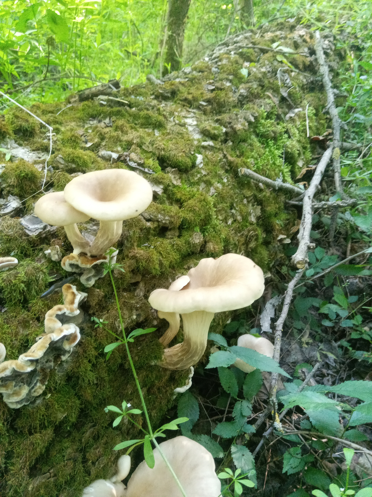 Описание гриба: Гриб рос на пне. 22.07.23 г. в городе. В основании крупные экземпляры, на верхушке сростка мелких. Подумал что вешенка, но очень большая и мало эксцентрическая ножка и частые пластинки убедили меня в обратном. Запах сильный грибной.