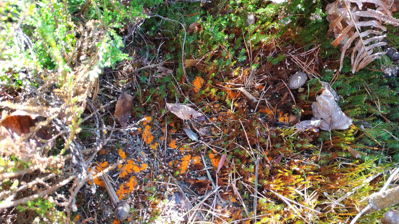 Очевидно как то связанны с экскрементами косуль. В другом месте видел такие же, те росли прямо на шариках.
