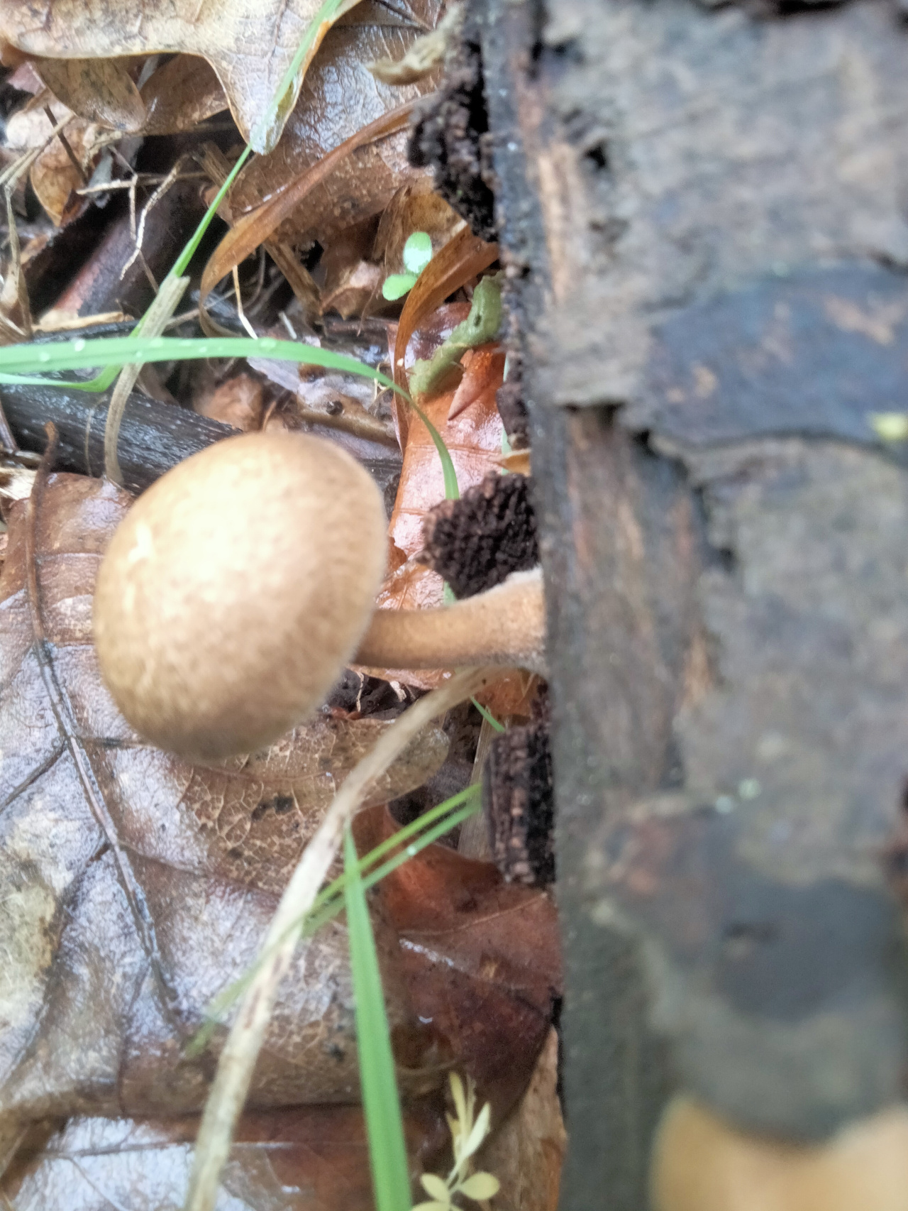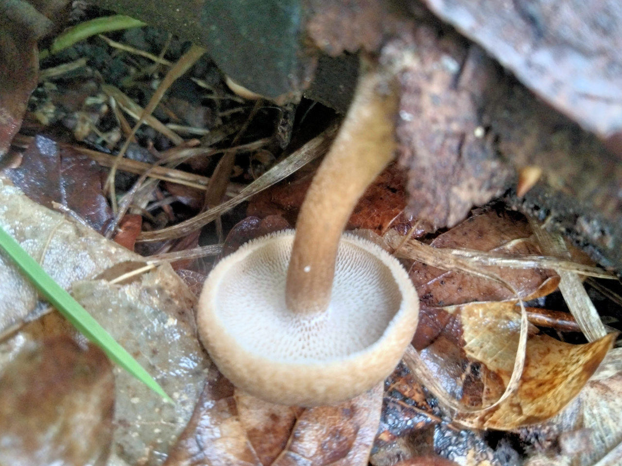 Трутовик ямчатый (Lentinus arcularius), потому что имеет выраженную ножку и мелкие волоски по краям шляпки.