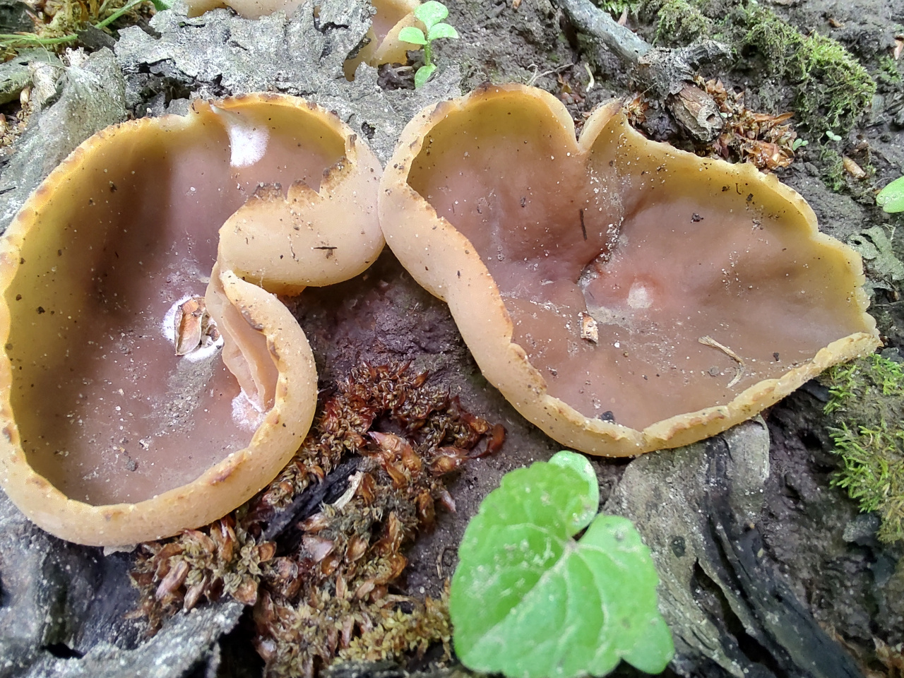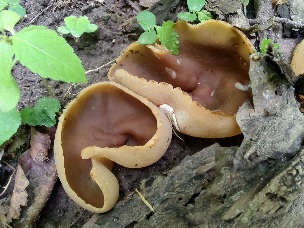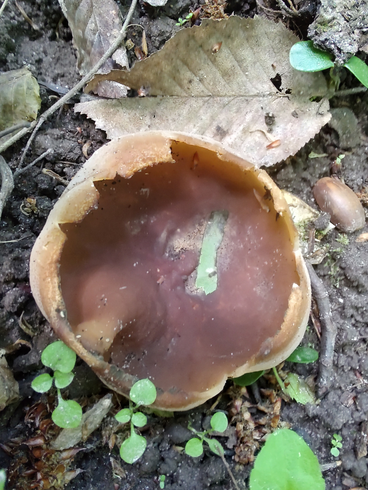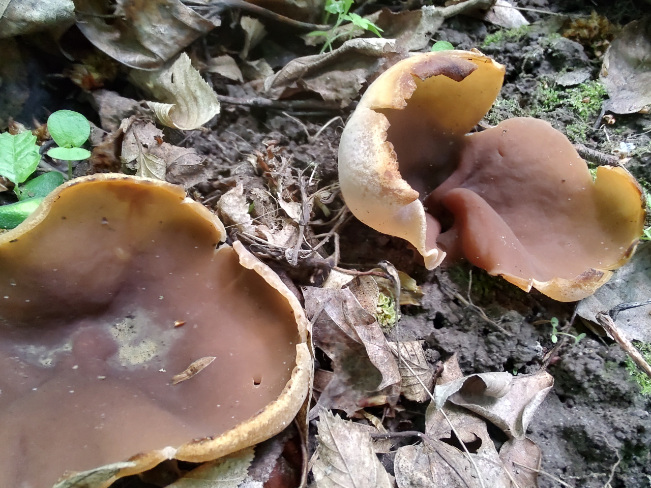 Описание гриба: Гриб растёт в лиственном лесу, во влажных участках леса. Растёт группами. Гриб очень хрупкий, особого запаха нет. В этом месте раньше росла Пецица коричневая, но похоже это не она — внешняя часть чашечки гриба какая-то светлая, не такая как у Пецицы коричневой. 11.05.2025