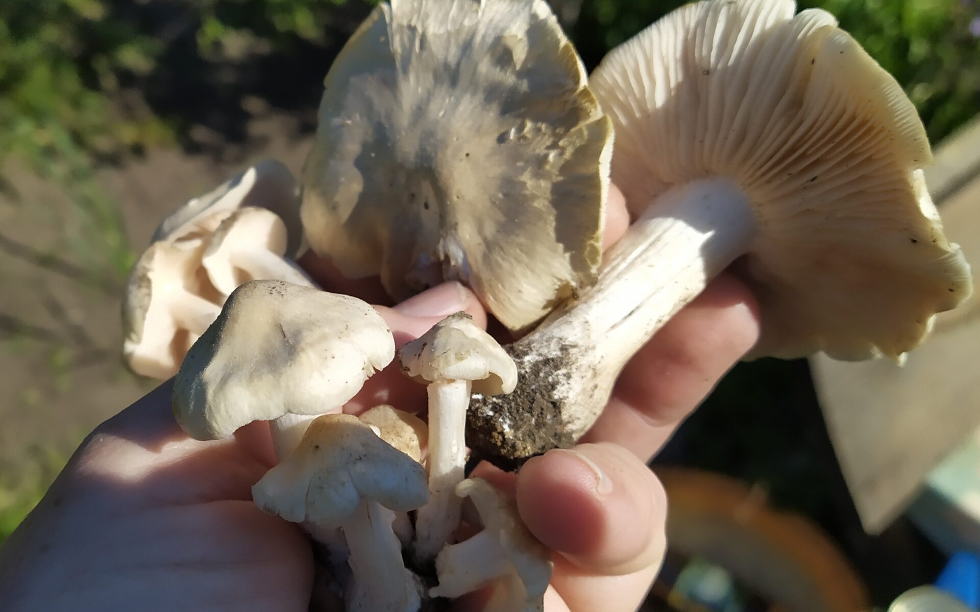 Да, ещё вешенки бывали на стволах старых яблонь. Росли сросшимися группами, размером до ладони, чистые, мясистые…
