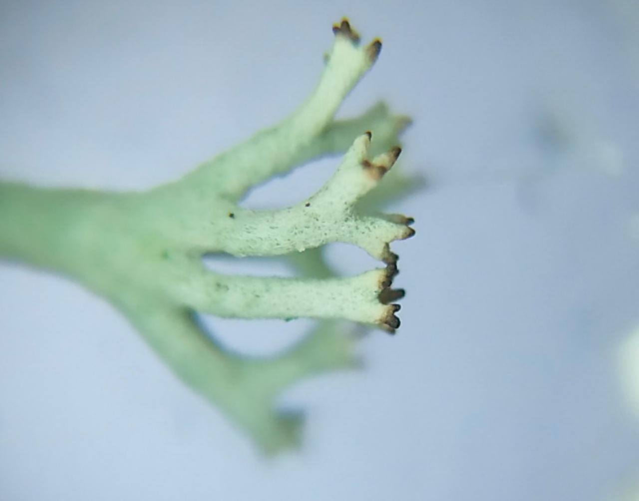 Смущает только, что самые кончики подеций на некоторых веточках в одну сторону загнуты. Это для, Мягкой не особенно характерно, они должны быть растопырены в разные стороны. Но у этих Кладоний такая вариабельность, что думаю можно пренебречь, коли уж по остальным признакам сходится.