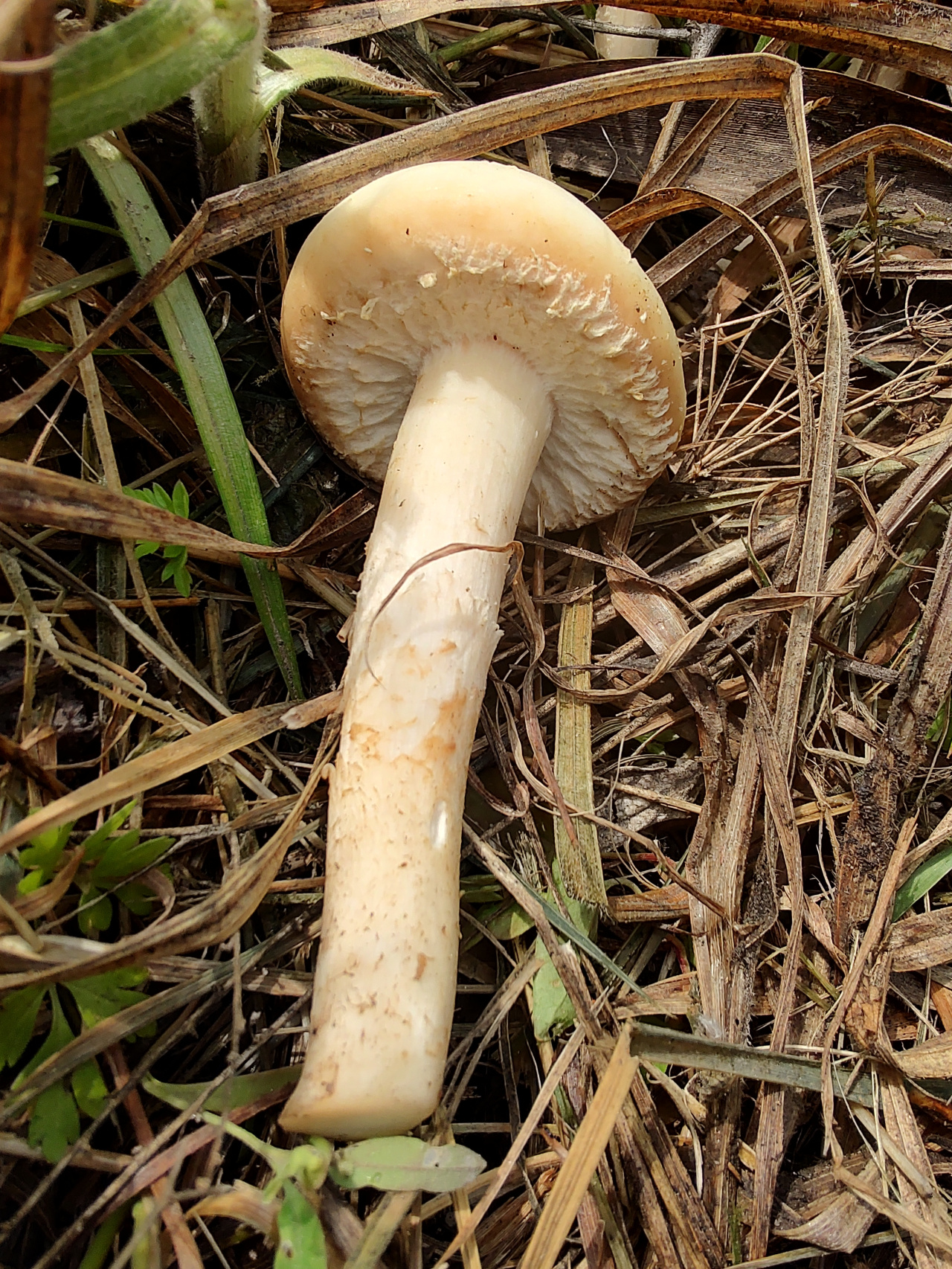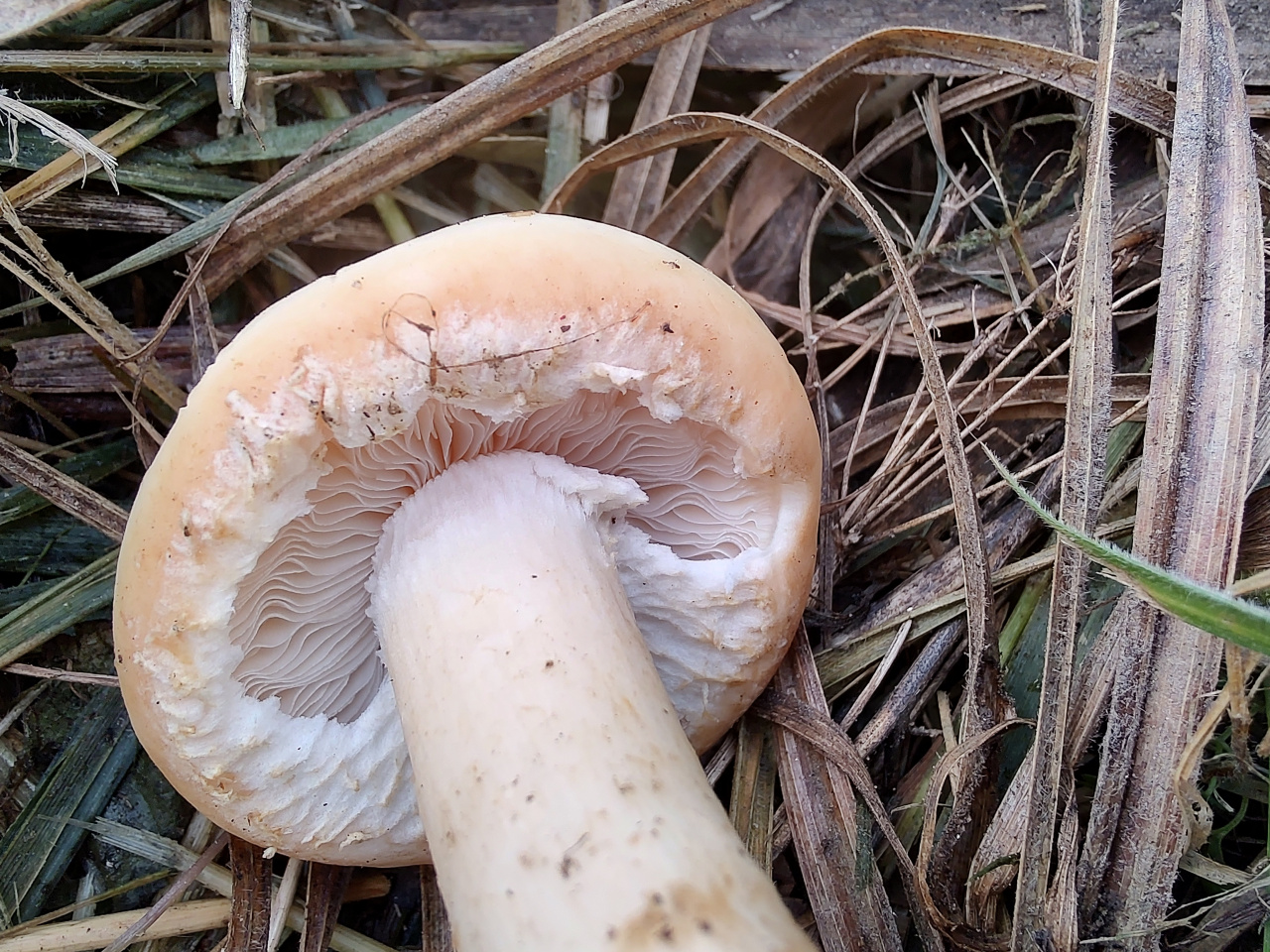Описание гриба: Гриб растёт возле лиственного леса, рядом ивы и озеро. Растёт по одиночке или по несколько штук. Под шляпкой остатки покрывала, в молодом возрасте полностью закрывает пластинки. 19.05.2025