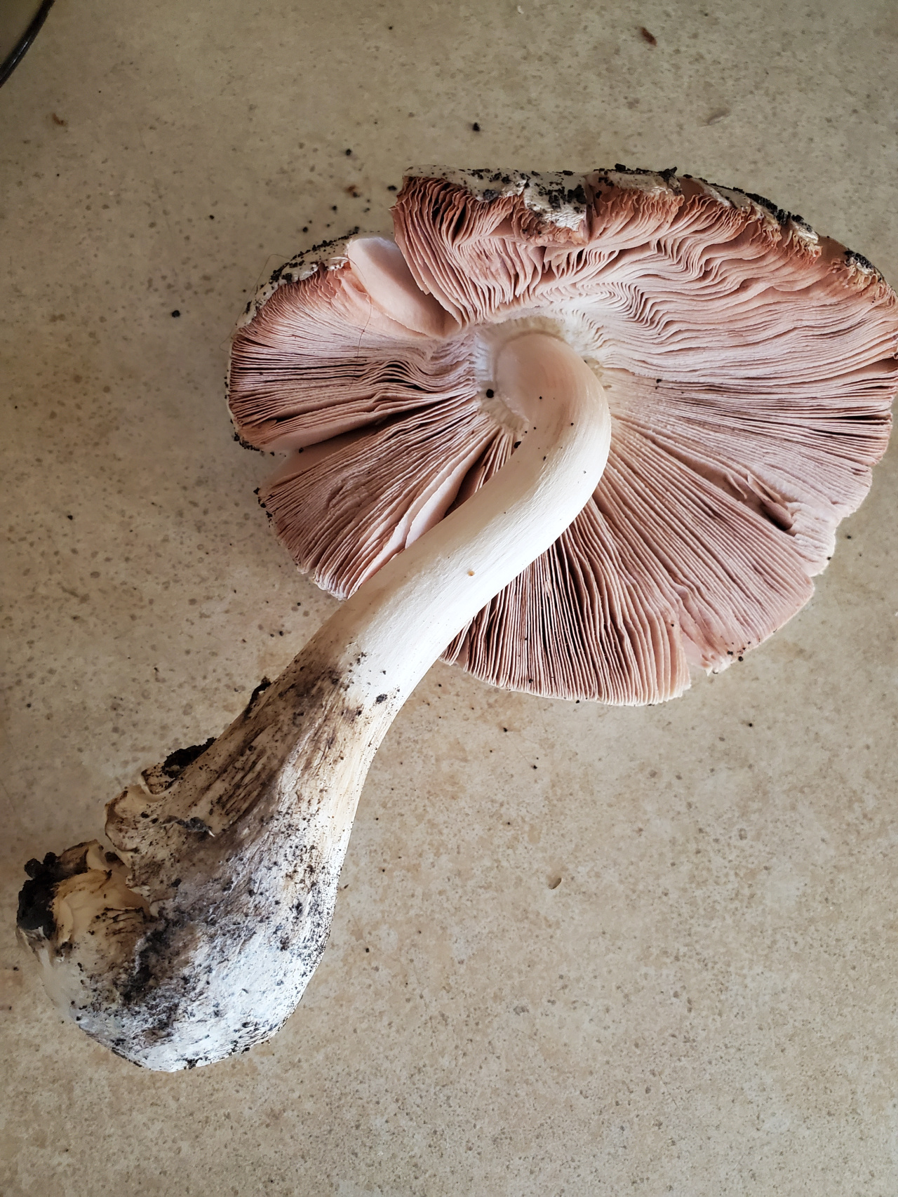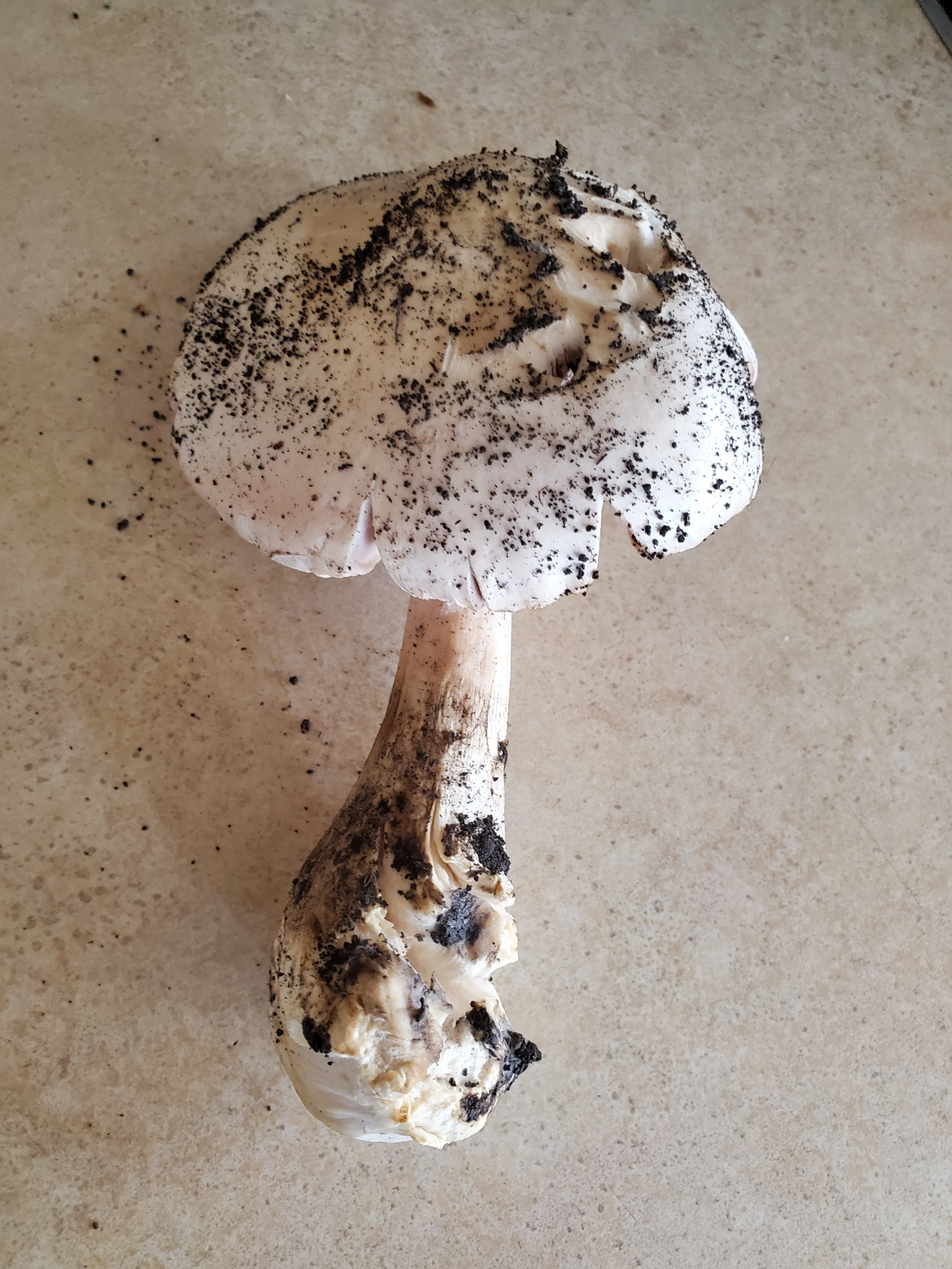 Описание гриба: Белый, большой гриб, грязный куполообразная форма шапочки
