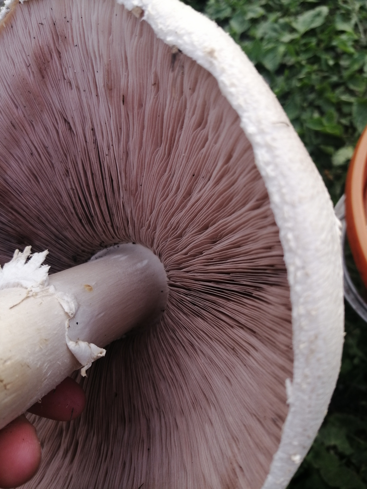 Разрежьте ножку гриба вдоль, чтобы посмотреть, не желтое ли основание ножки. (Для исключения ядовитого шампиньона желтокожего).