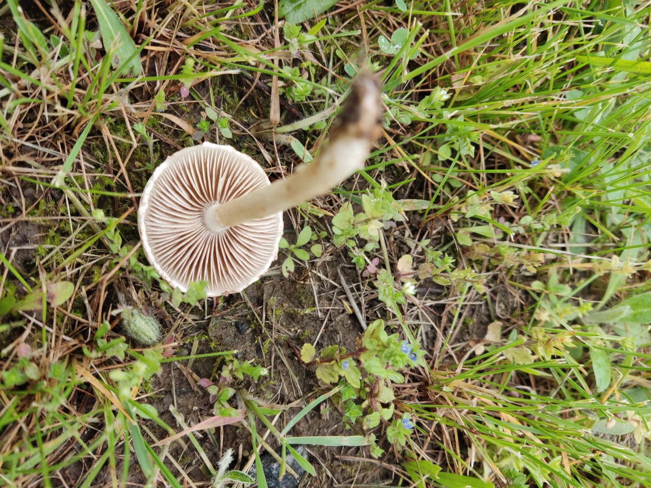 Описание гриба: Маленький гриб диаметр около 4-5см. Вырос на лужайке, на территории завода. Ножка длинная, тонкая, с чешуйками. На шляпке по краям еле заметна бахрома. Запах не понятный еле уловимый.