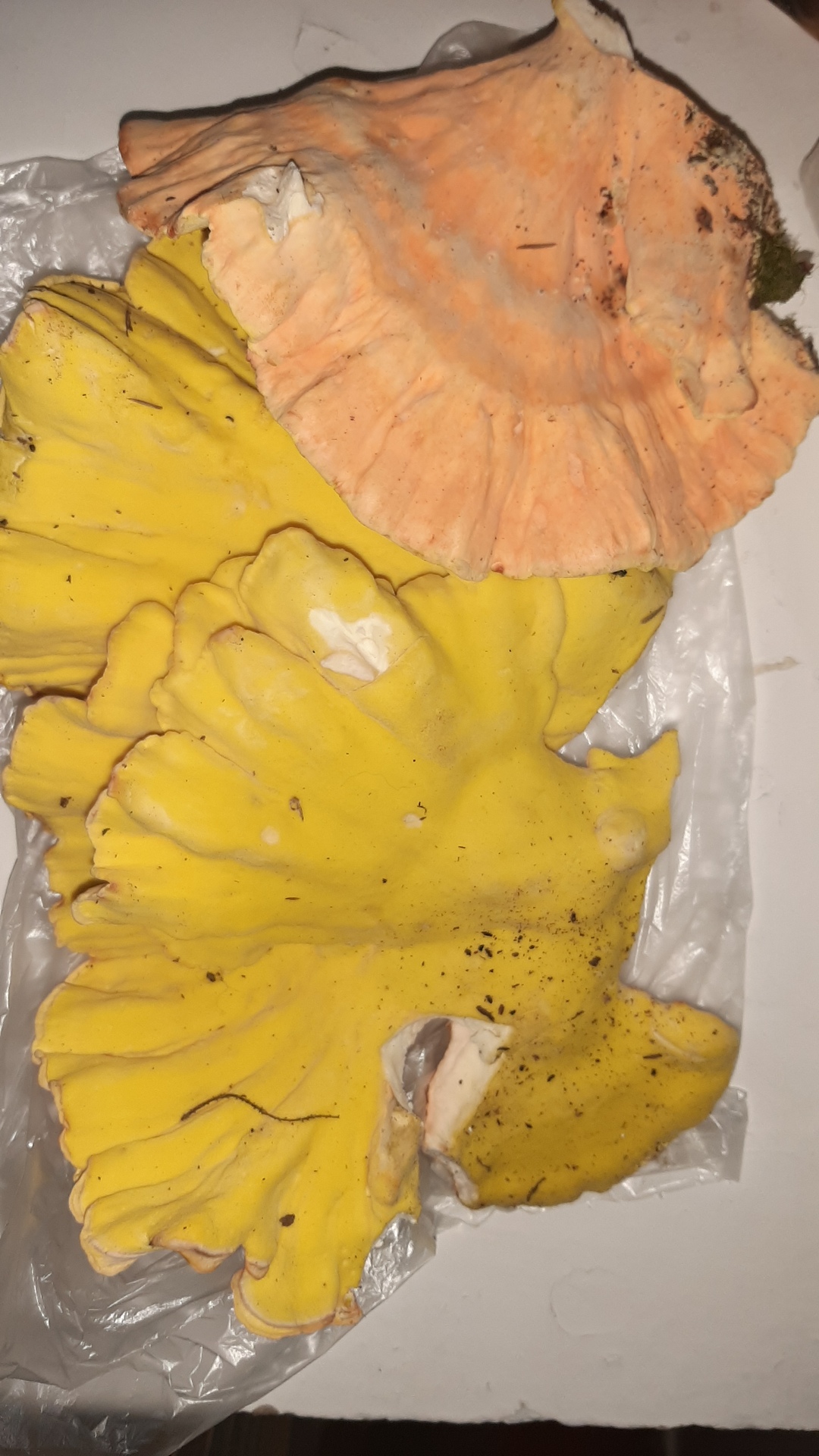 Описание гриба: А хвойный тсж(Laetiporus conifericola) вообще стоит есть? Росло на остатке упавшего ствола. Я без понятия какое это дерево. Учитывая что в основном Сосны и Березы с Елкой а лиственных деревьев мало. (Пример из гугла)