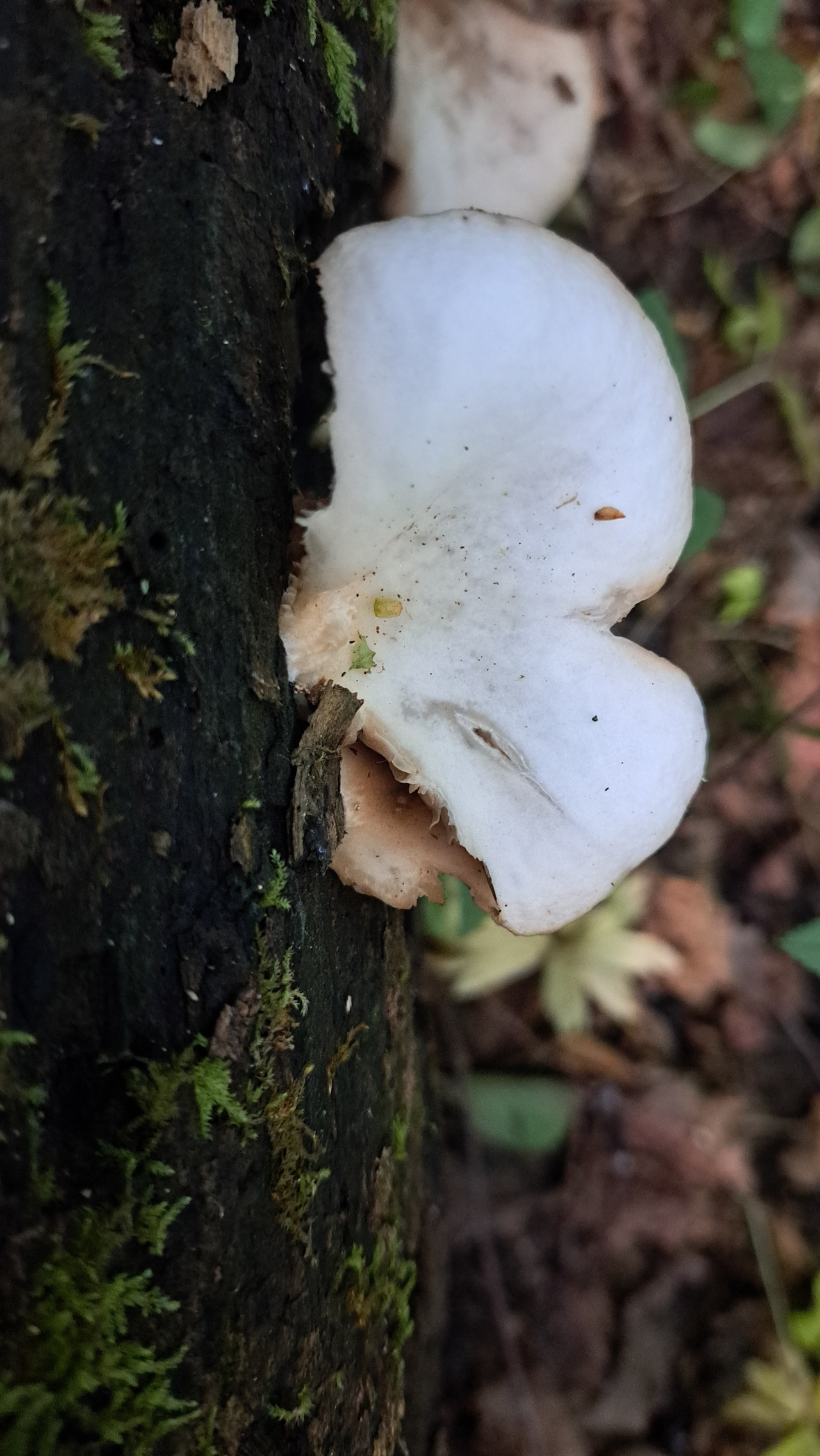 Описание гриба: Похожа на какую то вешенку, но красноватые пластинки смущают, и мякоть мягкая по сравнению с осенней. Что за она?