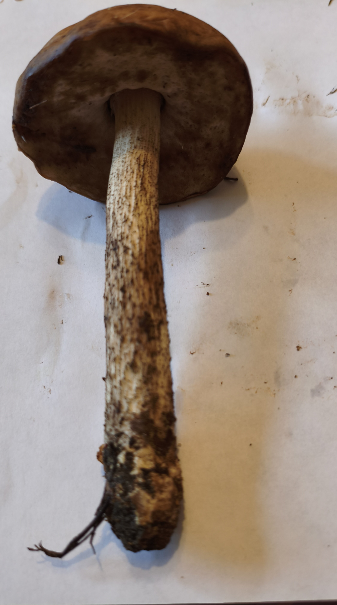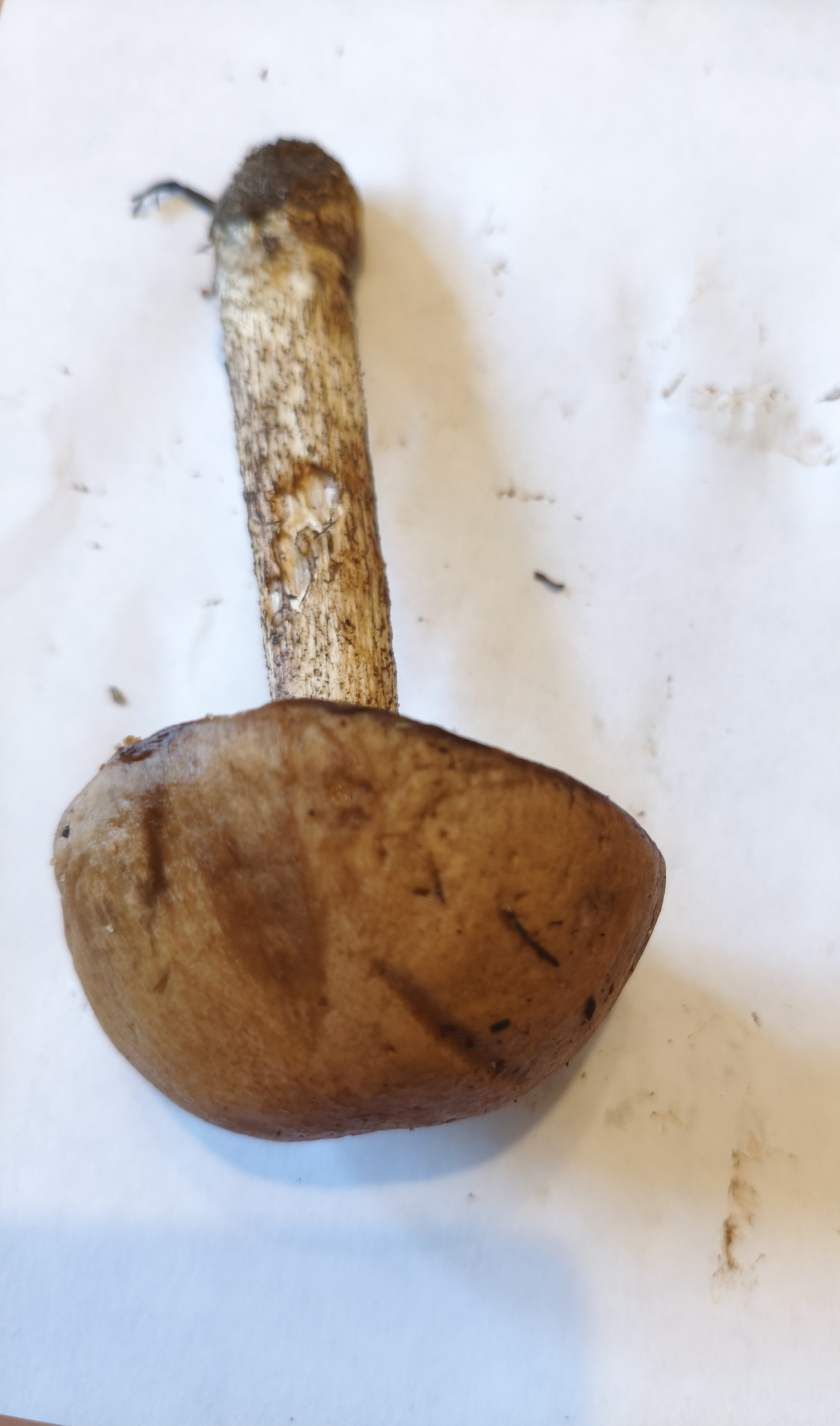 Рос в смешанном лесу, похож на подберёзовик, только светло коричневый, мякоть губчатая, была светлая под шляпкой когда сорвали, сейчас потемнела… Шляпка гладкая, запах нейтральный. Это горчак или ещё какой-то гриб?