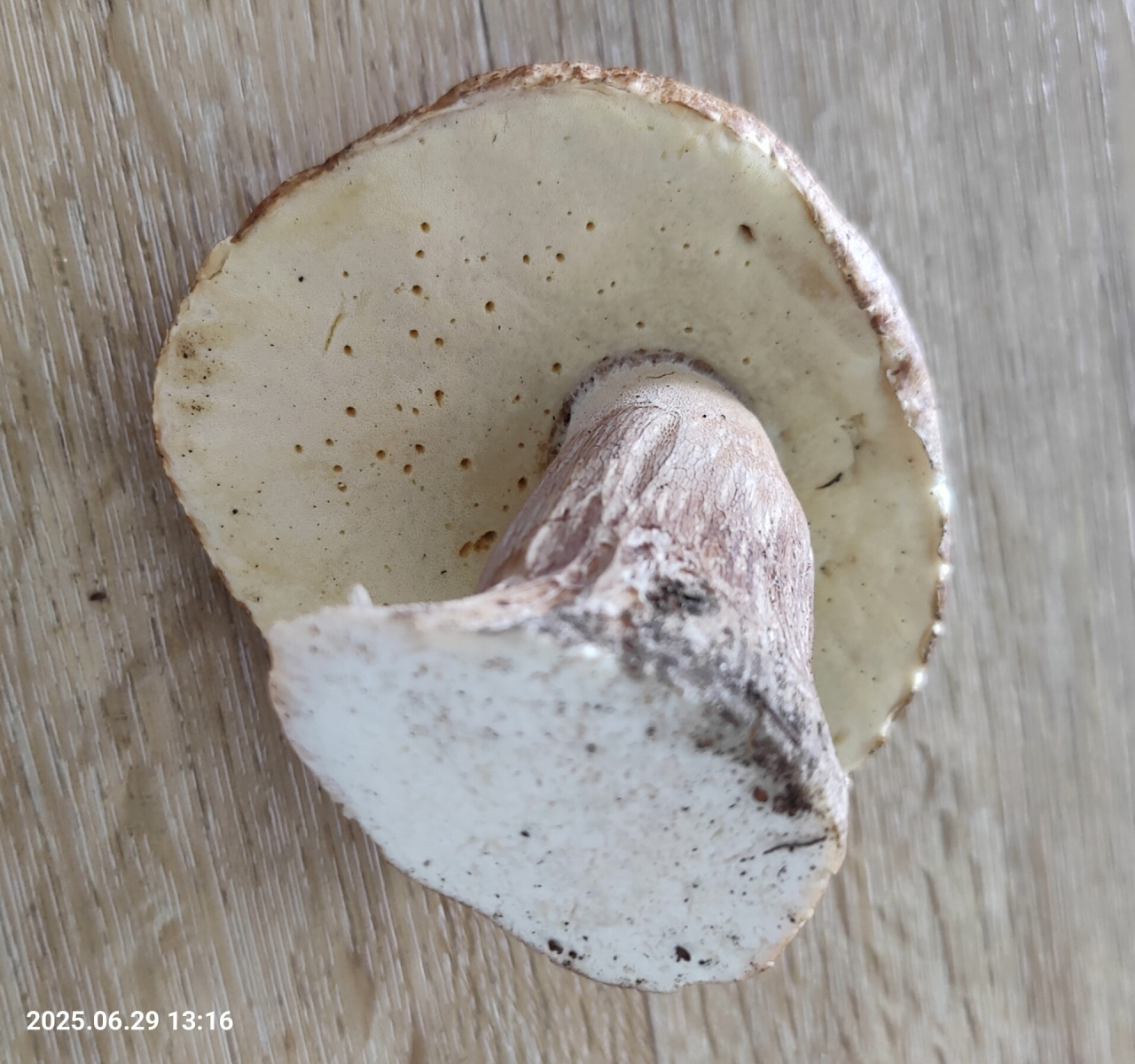 Похож на белый. Но гименофор мелкий и белый. Возможно, что желчный. Надо на вкус попробовать.