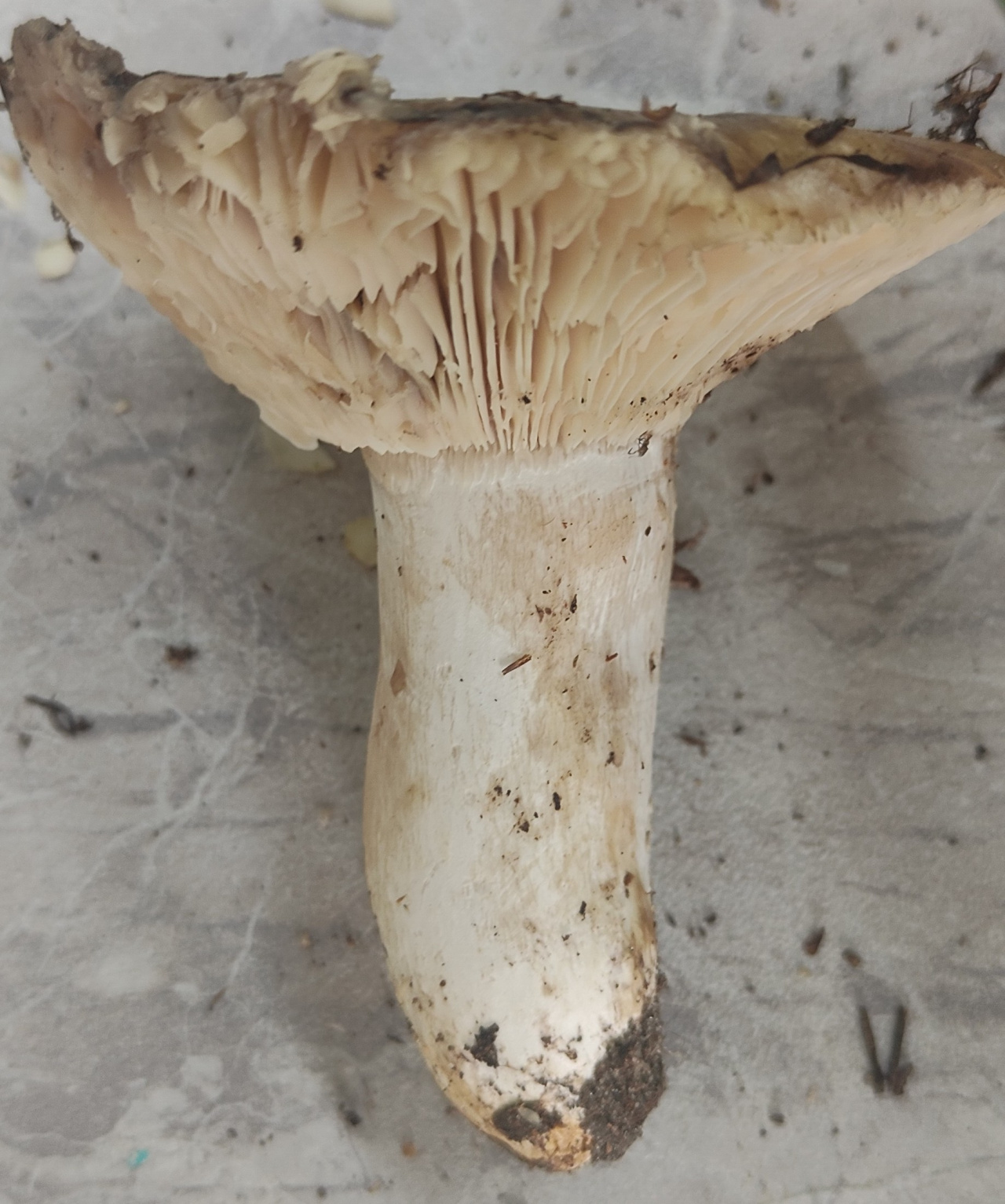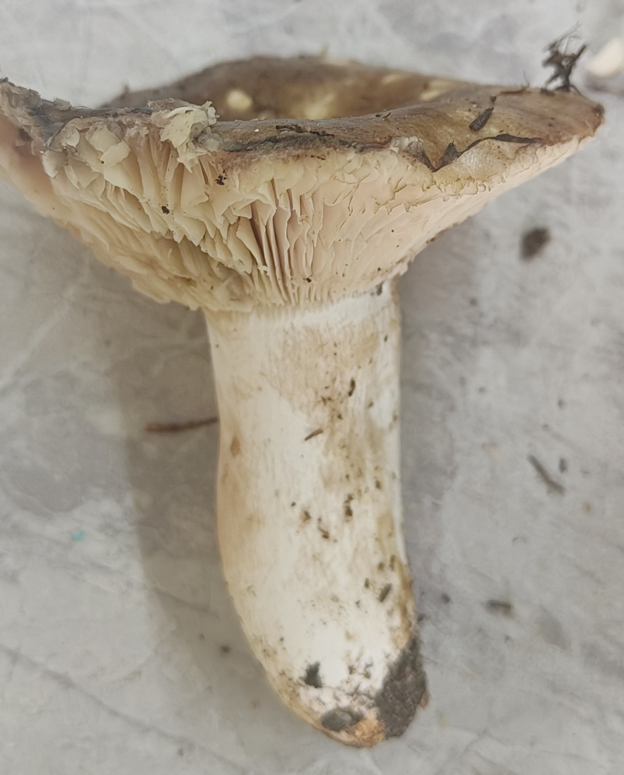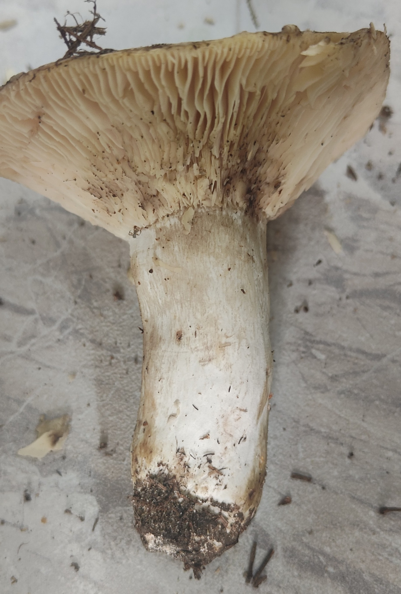 Описание гриба: Найден в смешанном лесу на востоке Подмосковья. Рос во мху. Пластинки хрупкие. Ножка массивная плотная, срез порозовел.