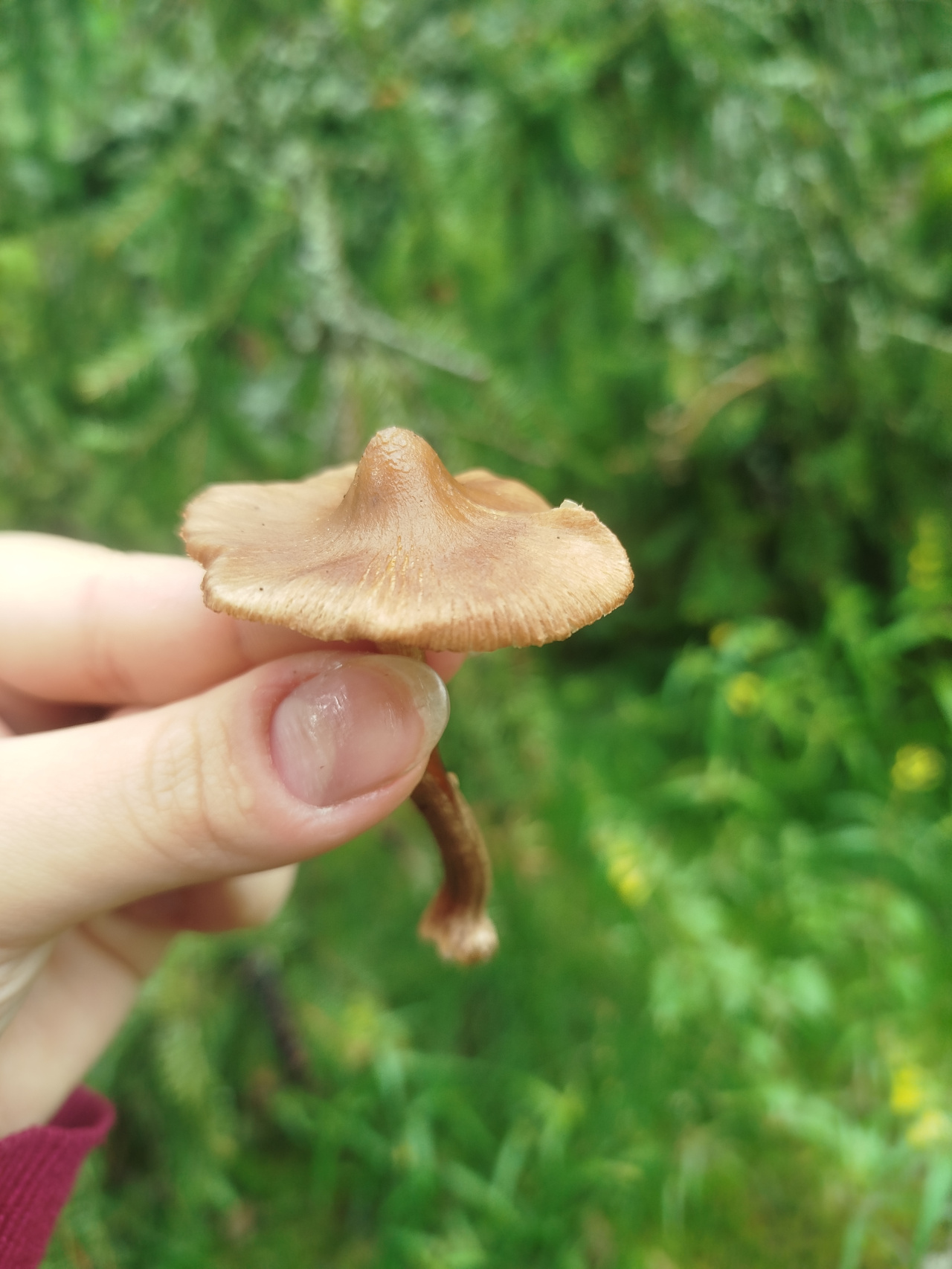 Описание гриба: Что за гриб? Нашла в лесу около поваленного старого дерева в лесной полосе города Петрозаводск. Запах приятный и грибной, но конечно же не в пищу, он не съедобный, это понятно. Цвет не меняет ни при каких обстоятельствах. Сначала думала, что это Фолиотина синеножковая, уж очень похож шляпкой, но ножка у моего гриба коричневатая. Пыталась выяснить у чата gpt, с чем я имею дело, но он выдал мне много разных предположений, поэтому я растерялась. Собираю гербарии из цветов, растений и теперь начала собирать потихоньку гербарий из грибов. Поэтому хотелось бы точных названий.