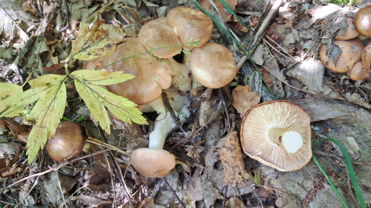 Описание гриба: Росли под пнем лиственного пня. Группой. Рядовки что ли какие то?