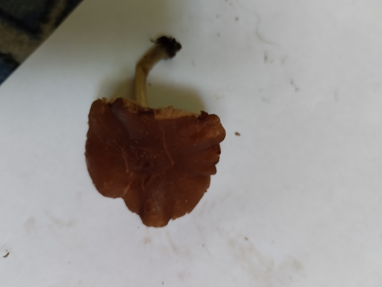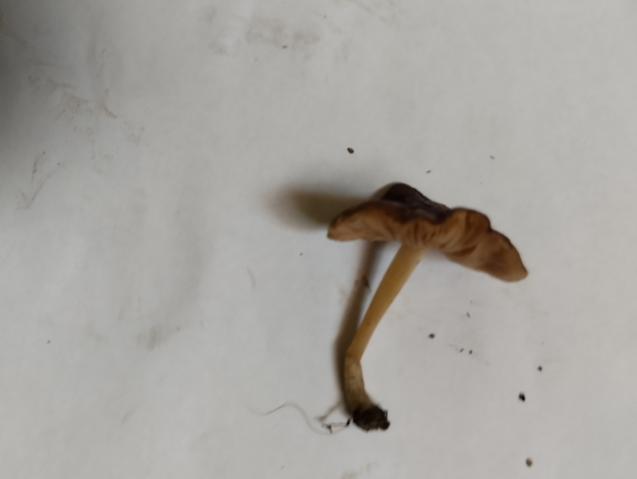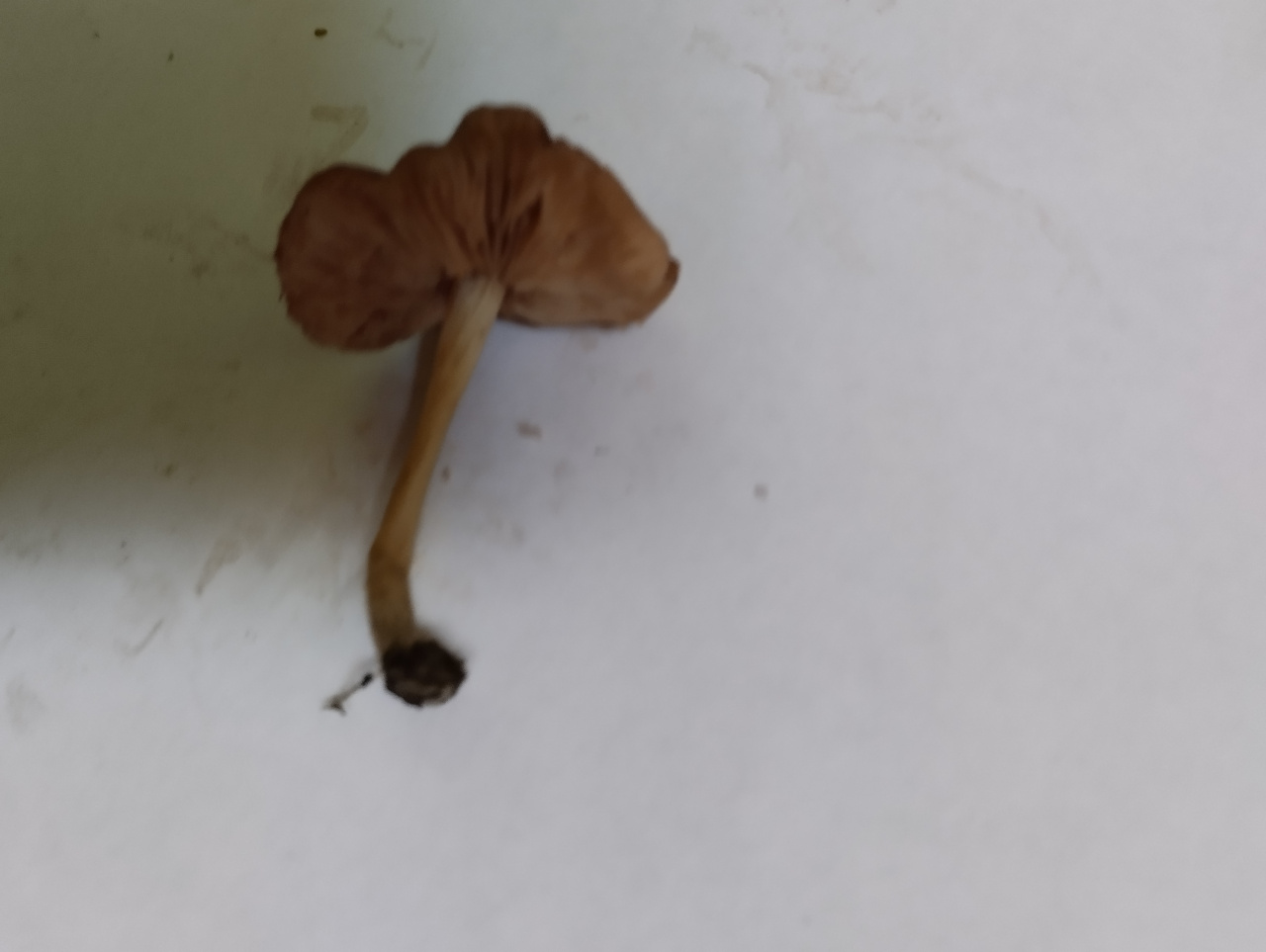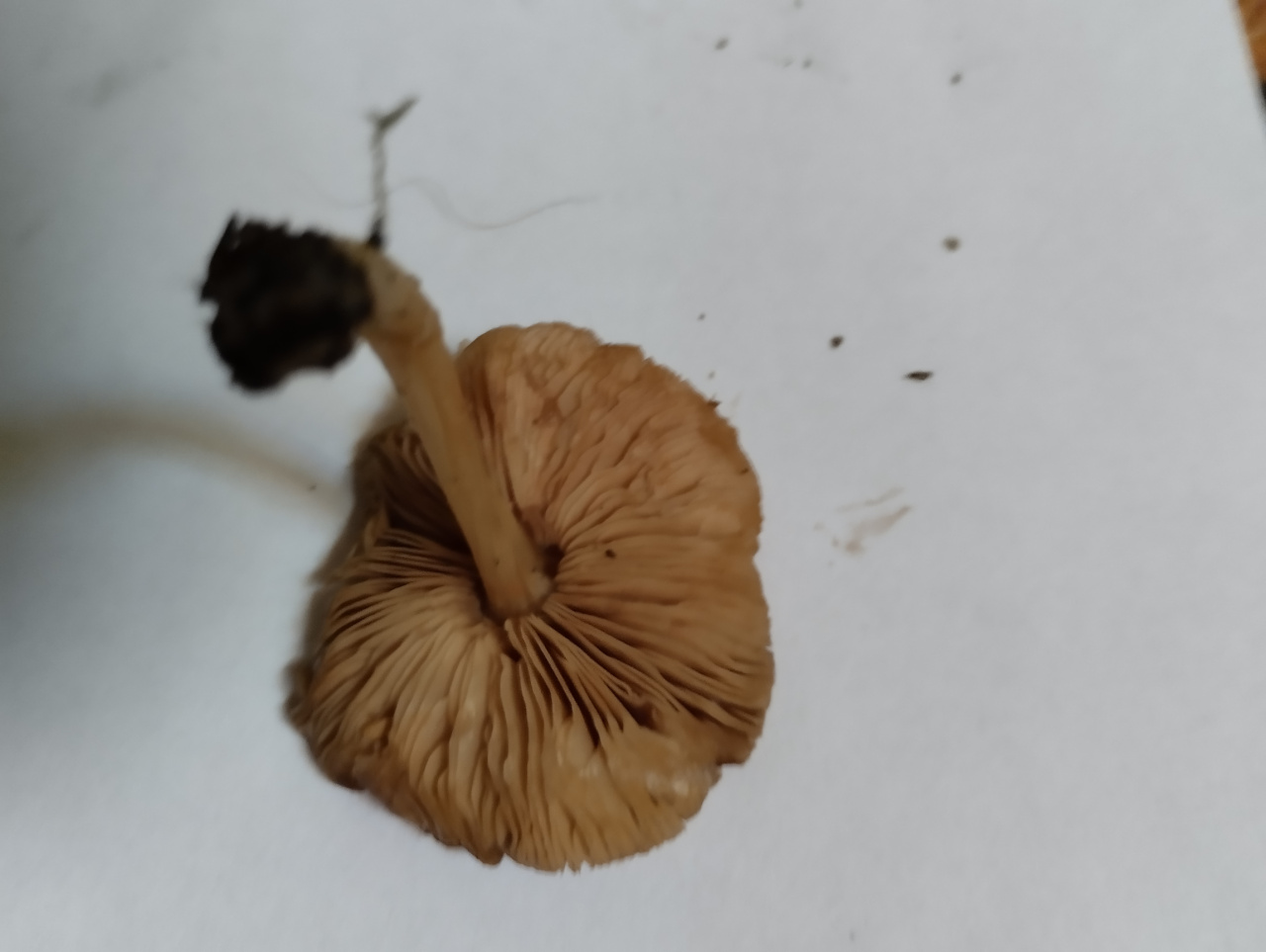 Мелкий гриб, похожий на плютей, но меньше по размеру и отличается по запаху. Рос на мёртвой древесине, рядом с ним ещё с десяток, похожих на него.
