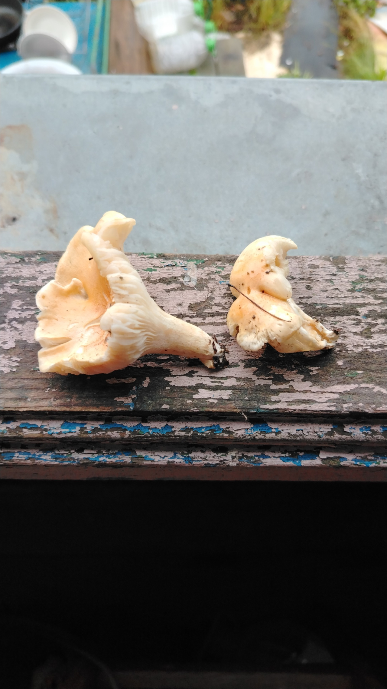 Описание гриба: Подскажите пожалуйста съедобный не съедобный. Росли вместе три штуки. Оранжевый оттенок шляпки.