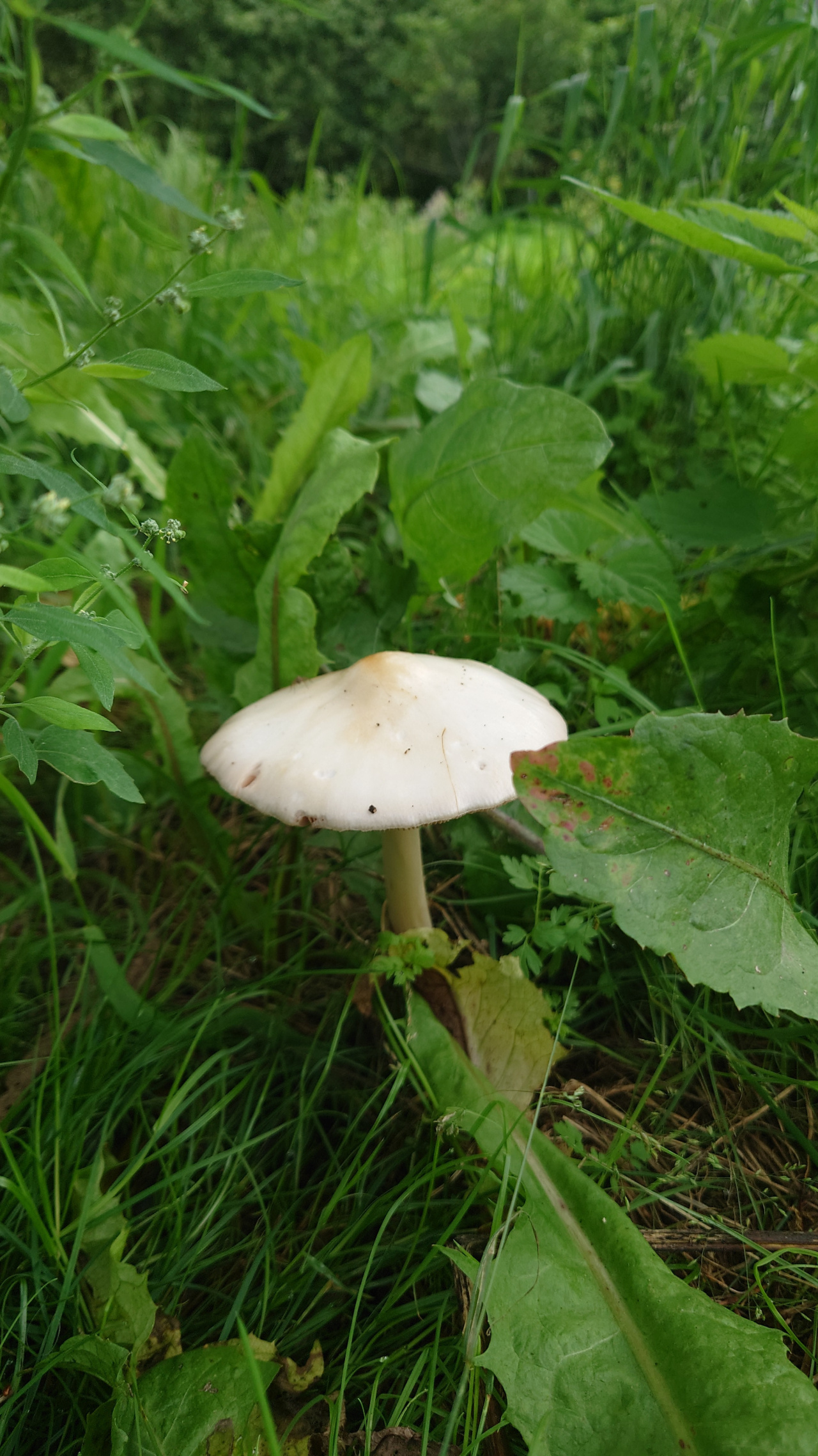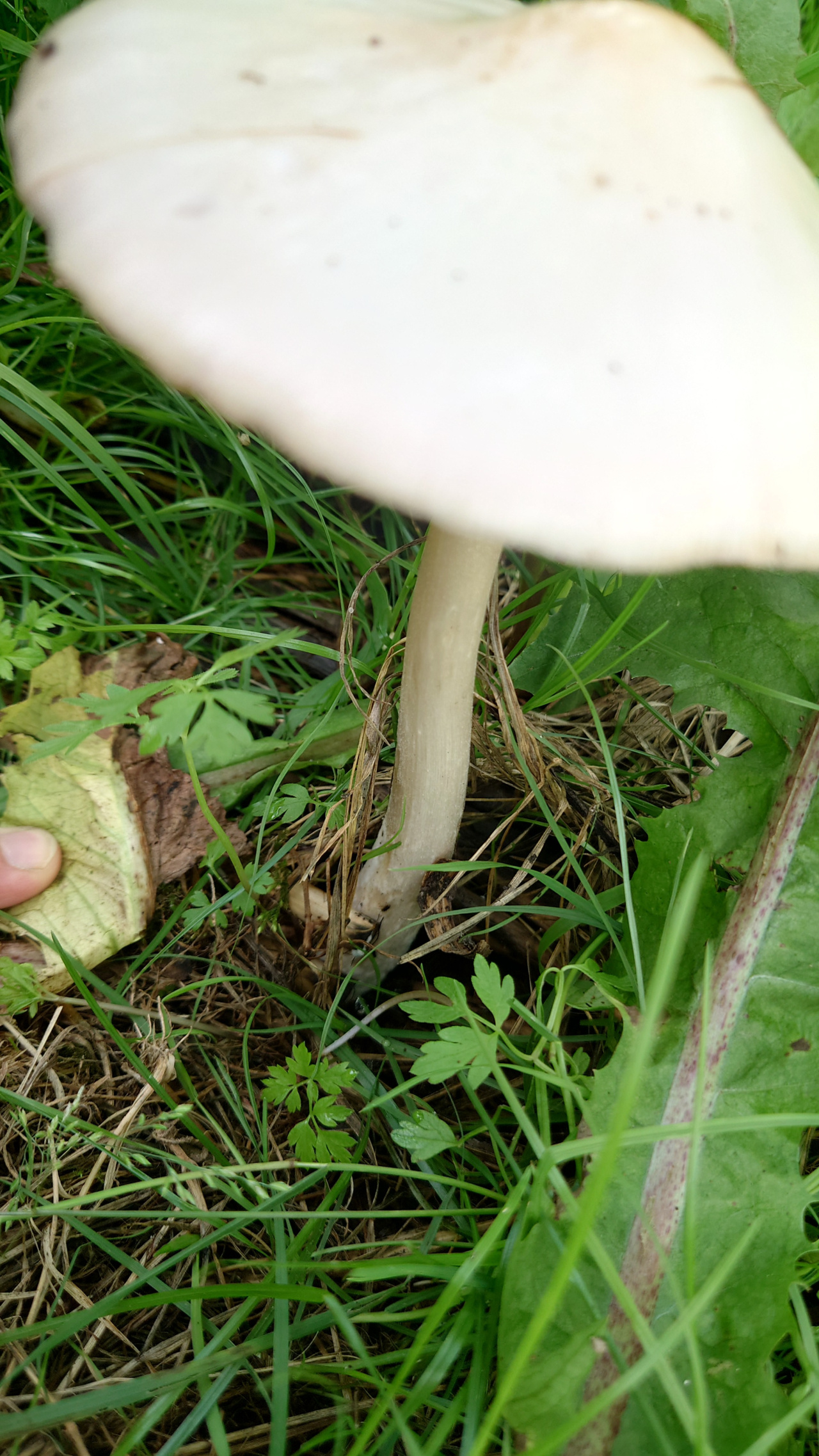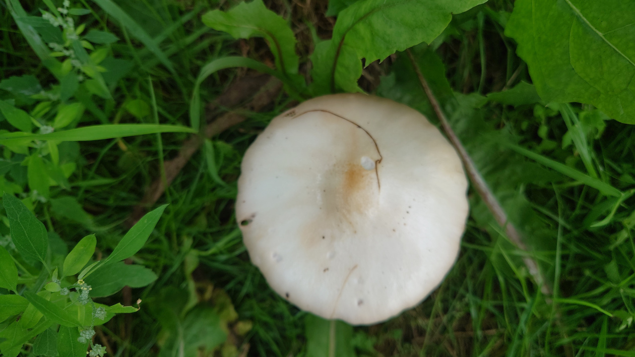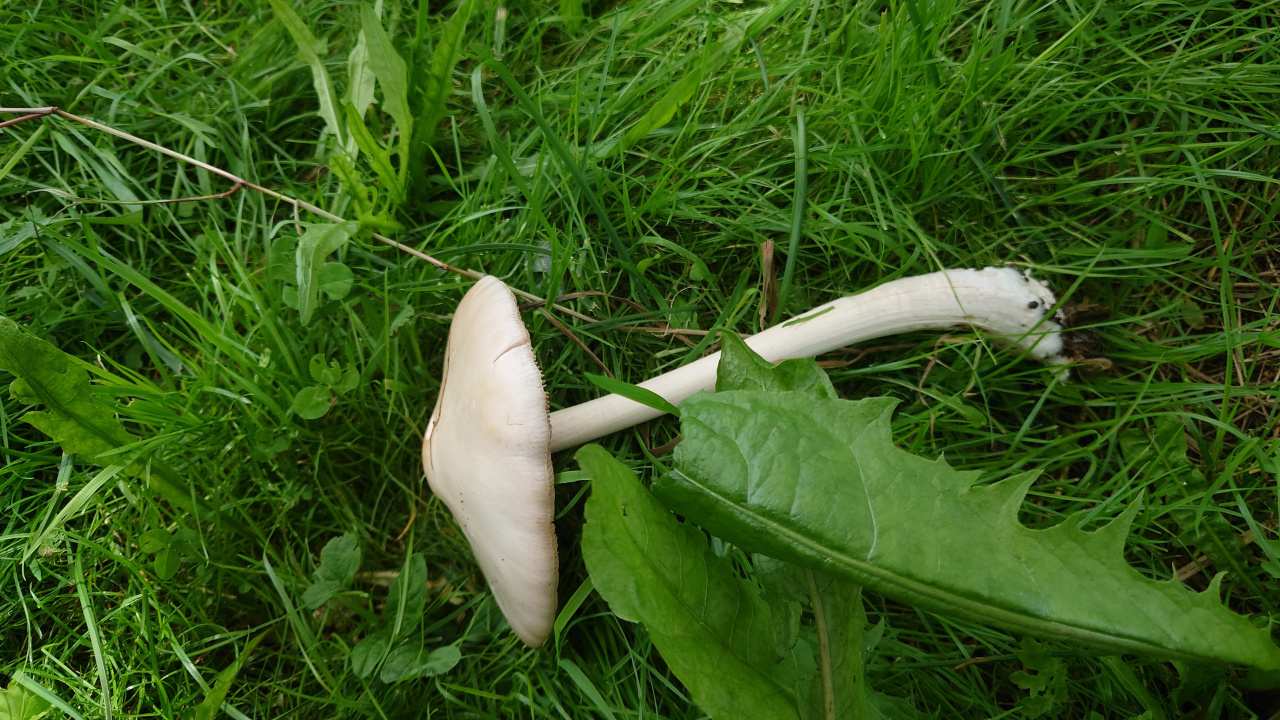 Описание гриба: Что за гриб? Вырос на участке под грушей. Только один. Юбочки нет, ножка и шляпка гладкие. Пластинки белые. Высота где-то 20 см, может и больше