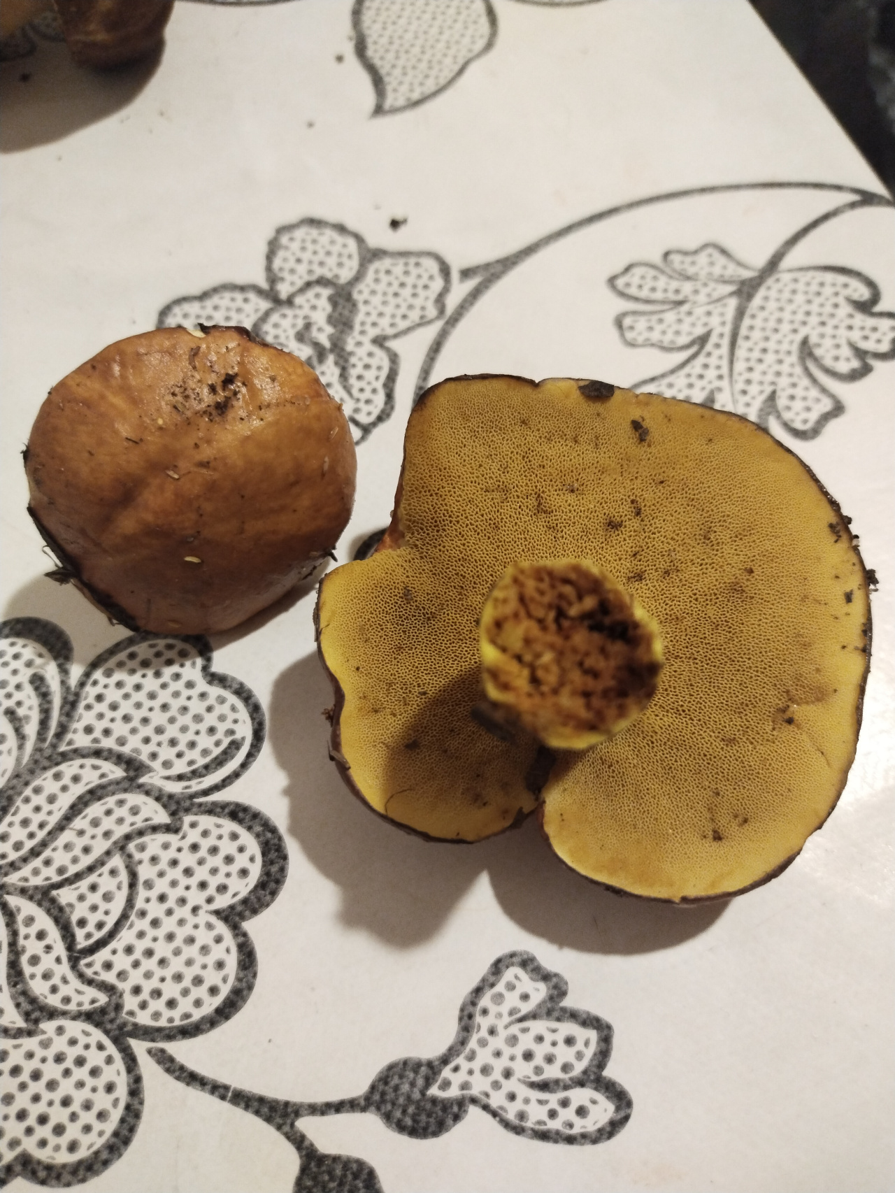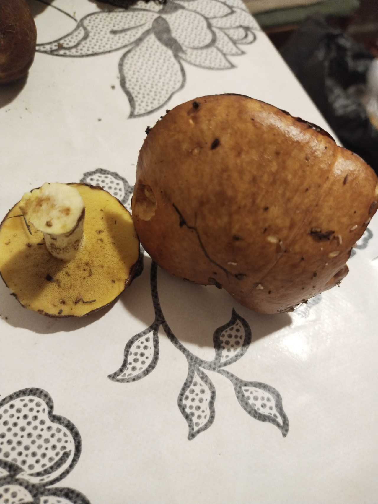 Описание гриба: Ножка плотная, светло-желтая, низ шляпки желтая губка, верх светлокоричневый