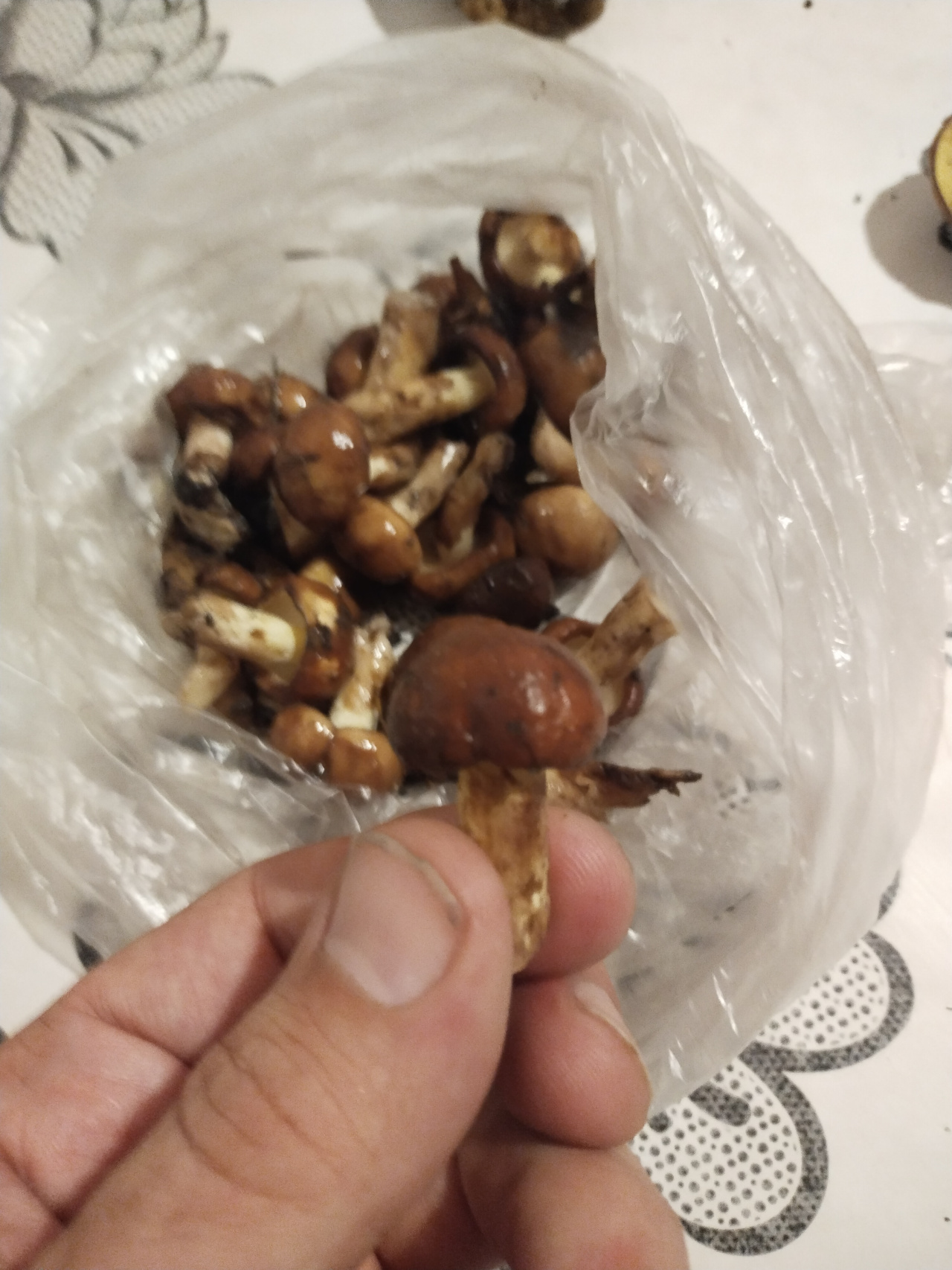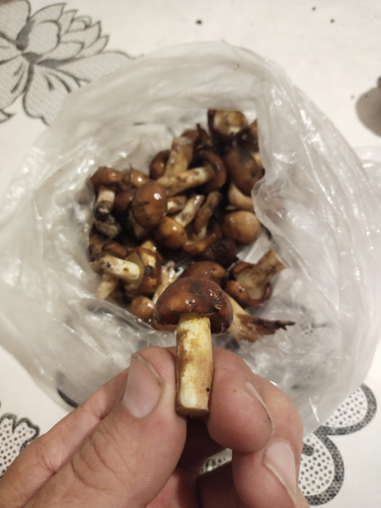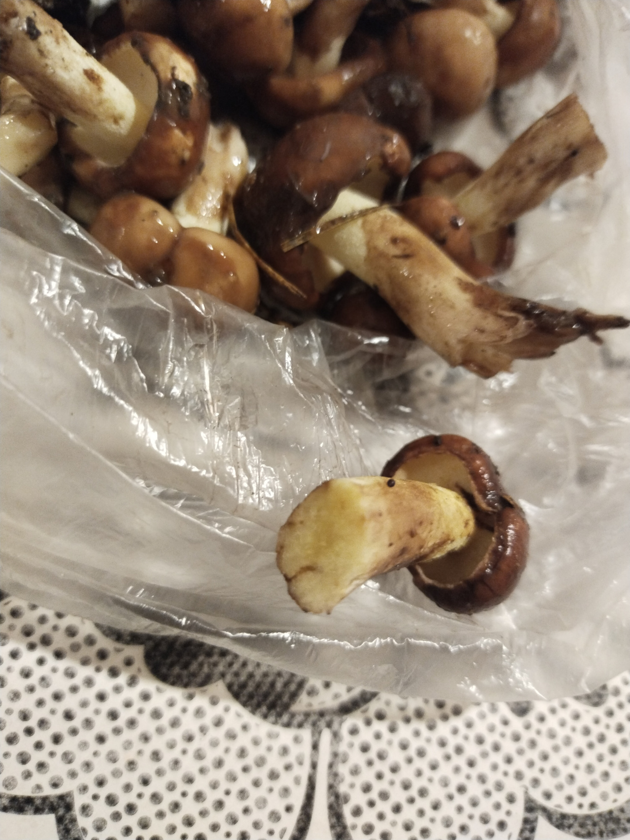 Описание гриба: Запах грибной, шляпка темно-коричневая, скользкая, низ шляпки — белая губка, ножка плотная светло-желтая внутри и снаружи, на срезе цвет не меняет. Лес в основном еловый.