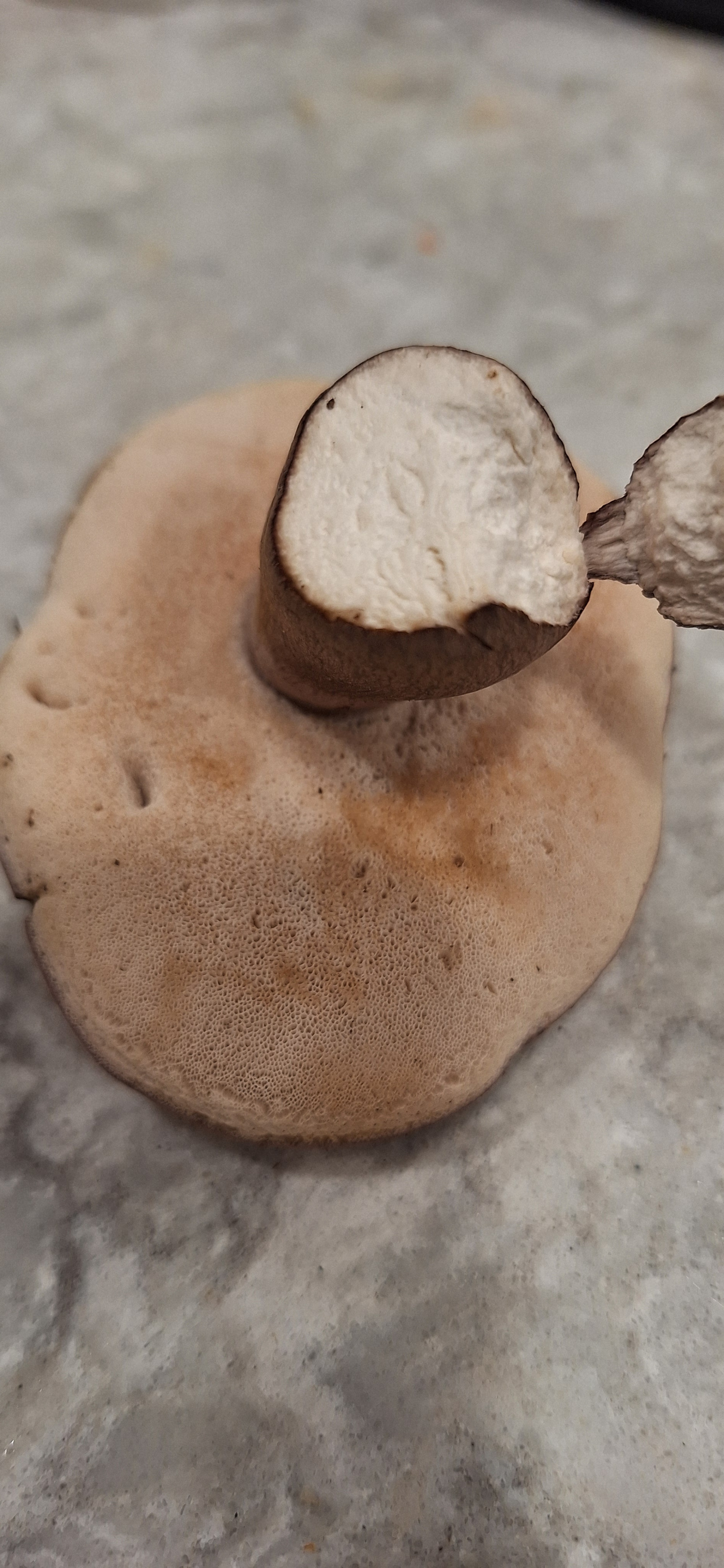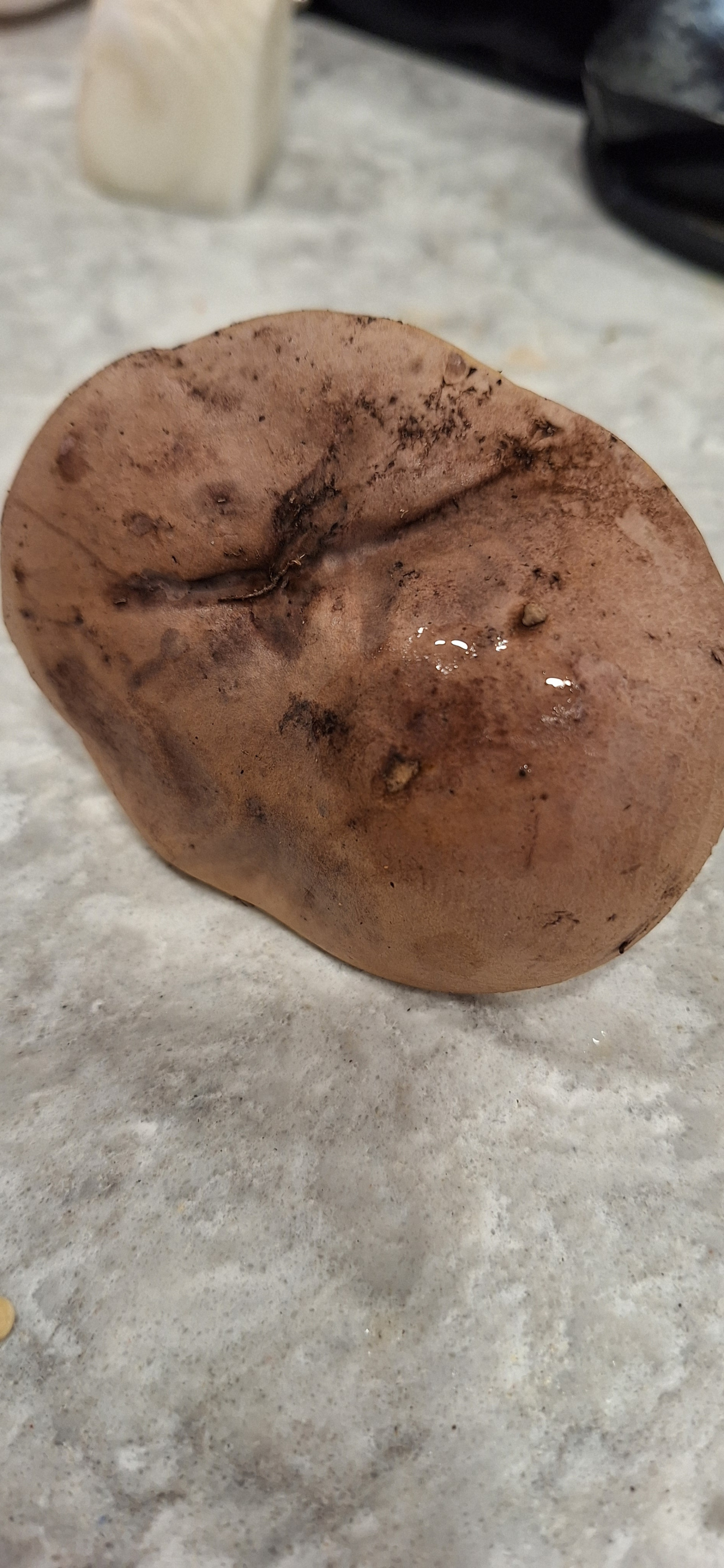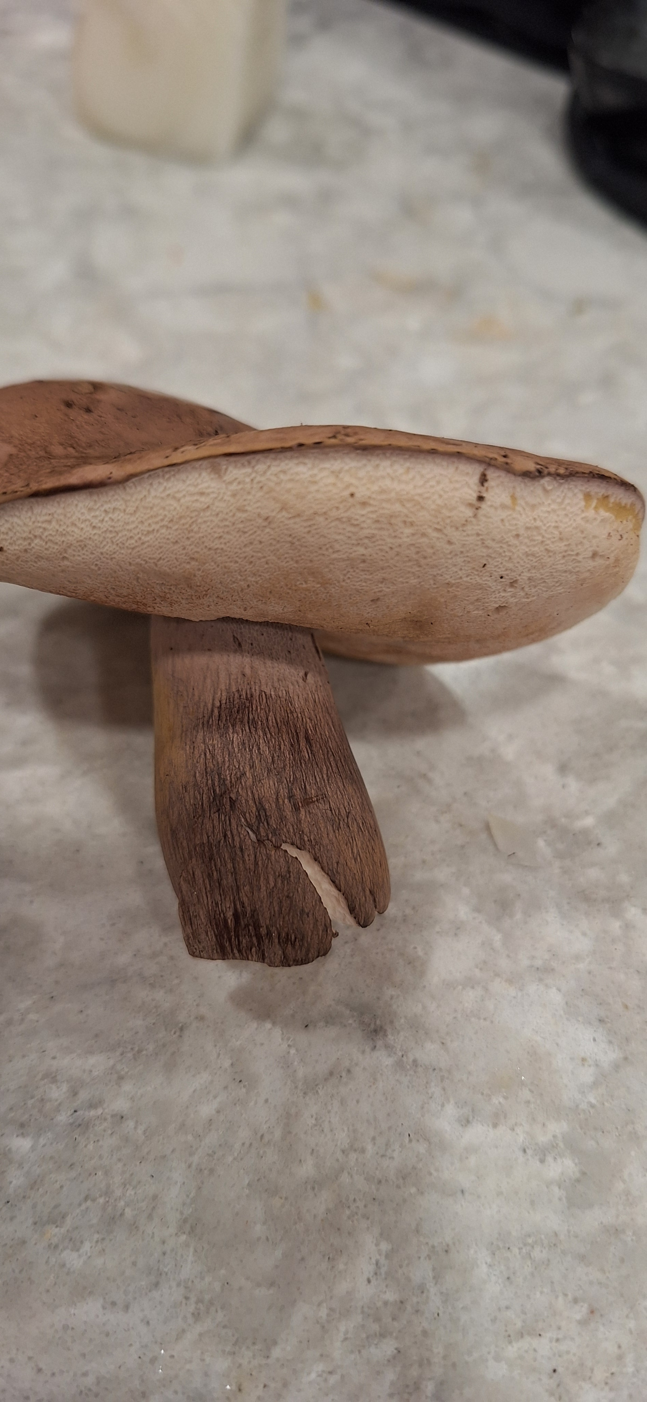 Описание гриба: Лиственный лес, много дубов. Гриб плотный, мякоть белая,, запах приятный. Снизу шляпка губчатая. Штат Мериленд. Приложение определяет то как масленок, то как подберезовик. Но здесь берёзы не растут.