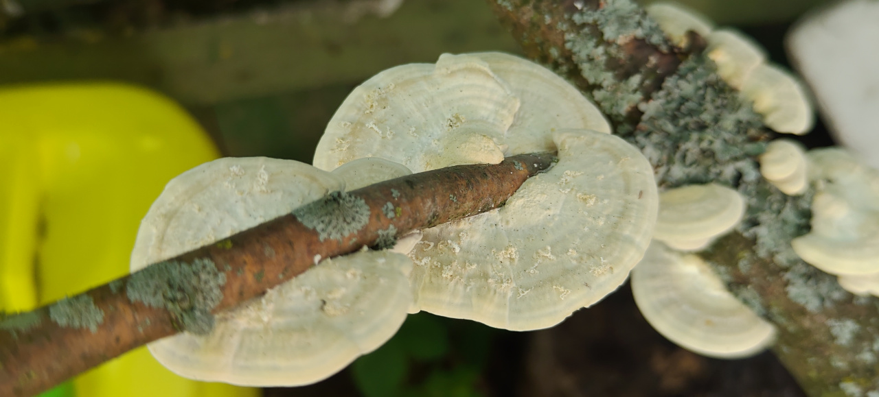 Описание гриба: Вырос на сухой ветке дуба, которая была спилена 2 года назад. Гриб на ощупь очень жёсткий, как резина.