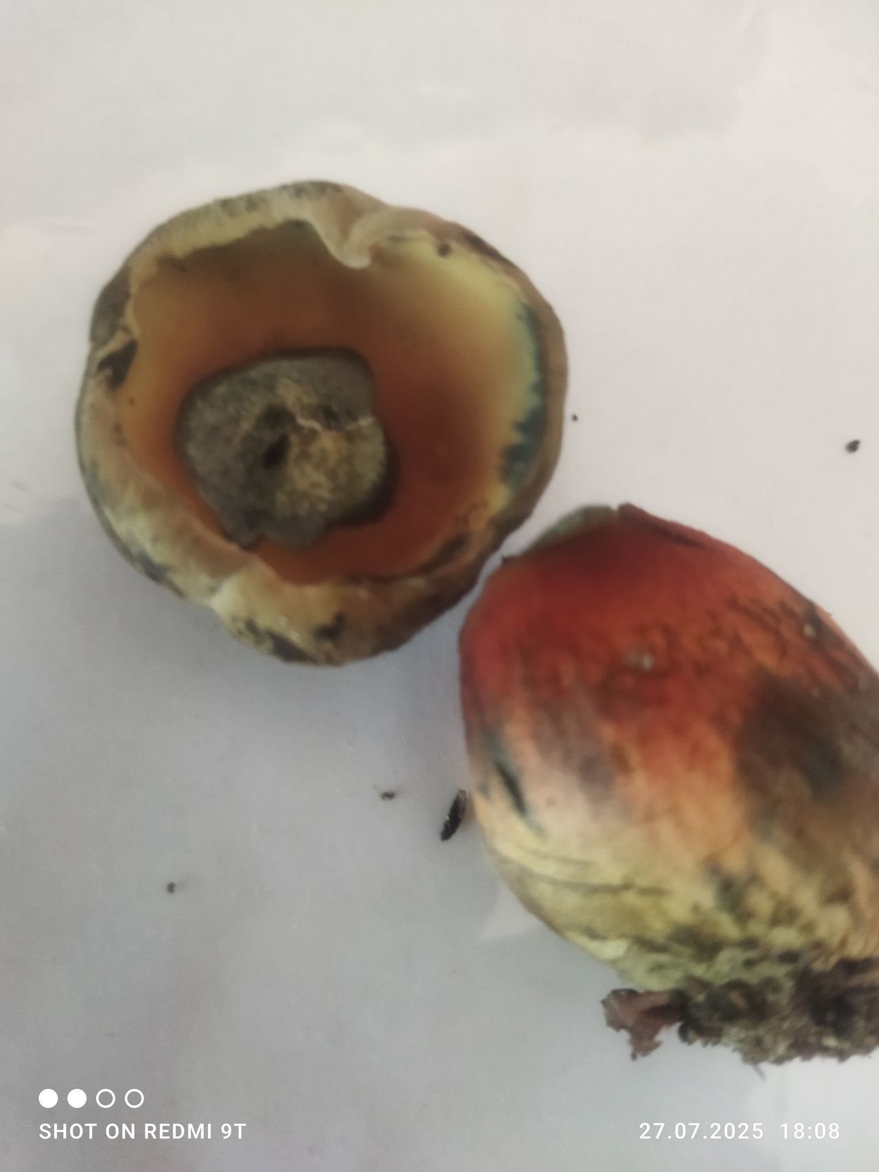 Описание гриба: Похож на боровик.Ножка сверху розоватая. На срезе быстро синеет. Найден в парке.