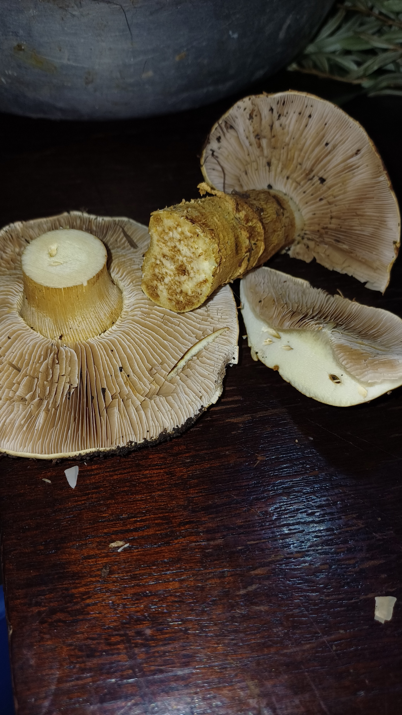 Описание гриба: Сбор в смешанном лесу, неподалеку от маслят. Не имеет запаха, ножка утолщенная. Имеет пленочку на ножке. На срезе ножка имеет светлый срез с легким жёлто-зелёным оттенком. В местах ходов червей через пару минут отверстия потемнели до коричневого цвета.