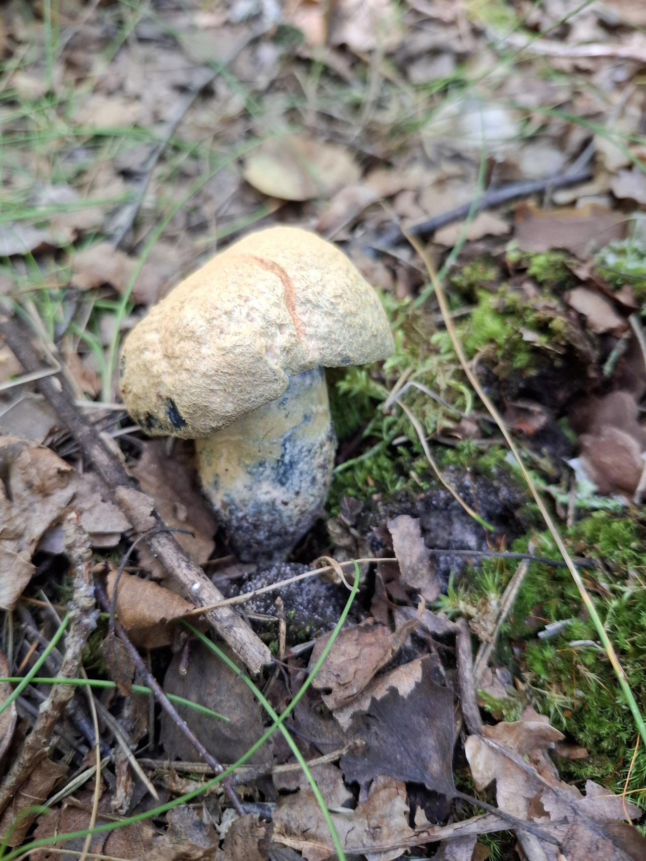 Описание гриба: Гриб найден в березово-осиновом подлеске под Гомелем. Гриб похож на Белый, но с желтоватым оттенком. Шляпка светлая. Ещё он синеет. Что за он?