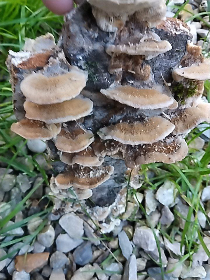 Описание гриба: Спиленный пень в подсобном участке. Растет коллонией по всему пеньку, погода сильно влажная, август месяц.