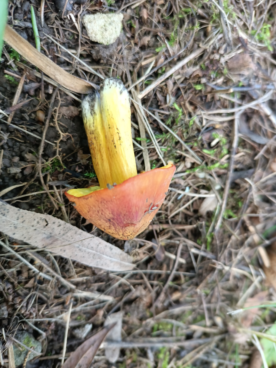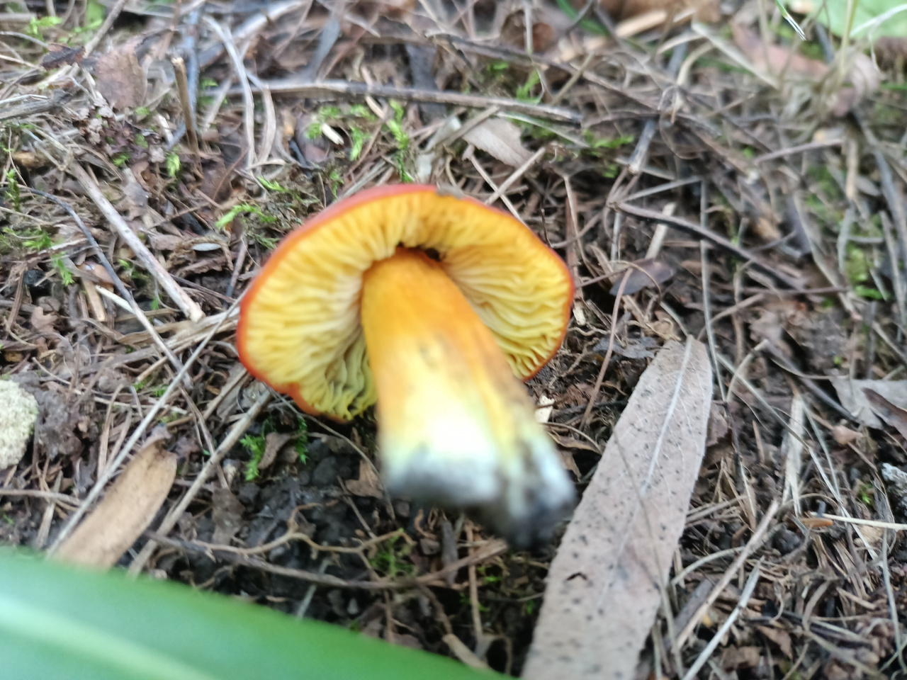 Яркая оранжево-красный, пластинчатый, шляпка куполом