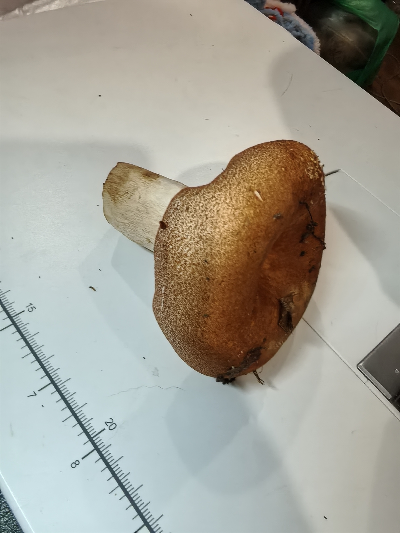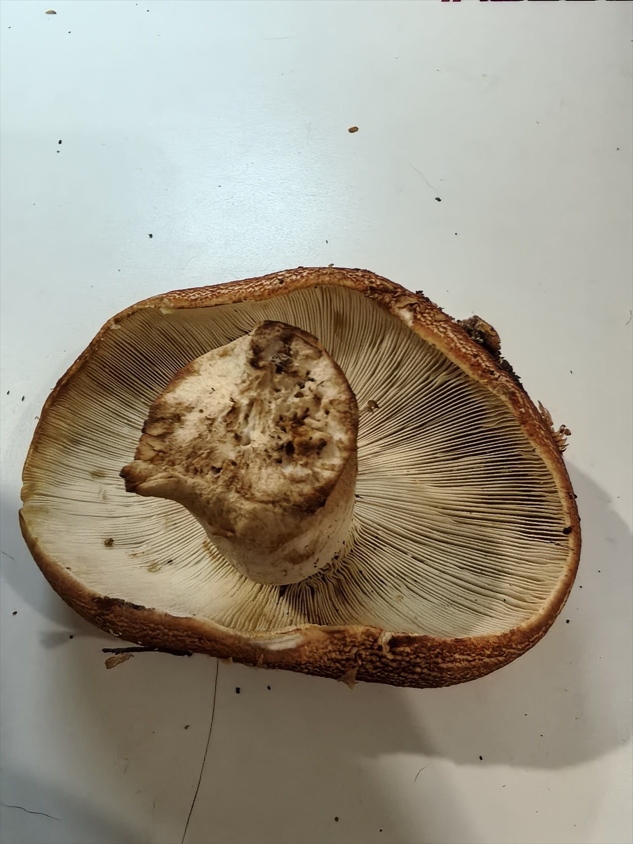 Описание гриба: Гриб пластинчатый, по форме напоминает грибы из семейства груздей. Размер от 4 до 12 см. Шляпка обычно светло-коричневого цвета, в центре вдавленная, по краям у молодых грибов загнута вовнутрь, бархат стая наощупь, сухая, имеет по краю характерный рябой окрас (бело-коричневые), который можно увидеть и у старых грибов. По консистенции плоитный. Ножка широкая, плотная, светло-коричневая или кремовая, на разрезе заполненная, не полая и внутри белая. На срезе цвет не меняет. Запах грибной, приятный. Найден в Приморье в конце июля, начале августа . Встречается чаще группами от 2 шт и более.