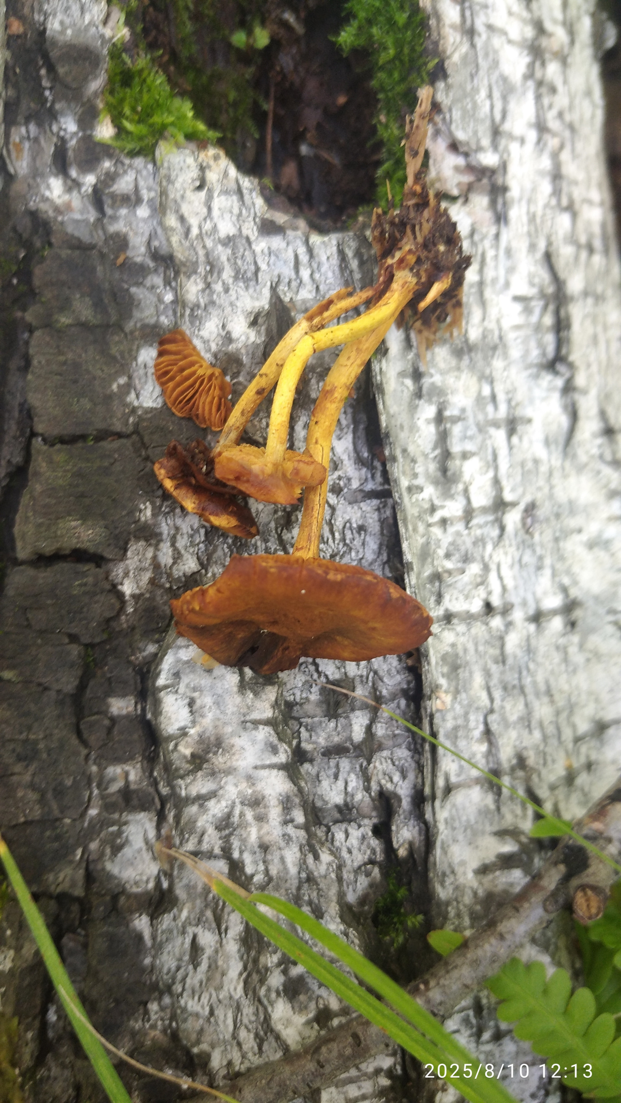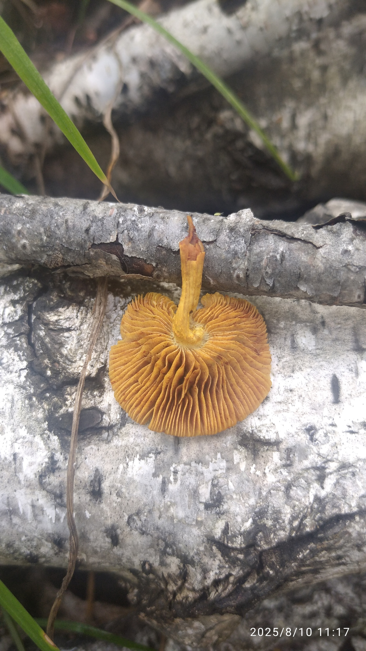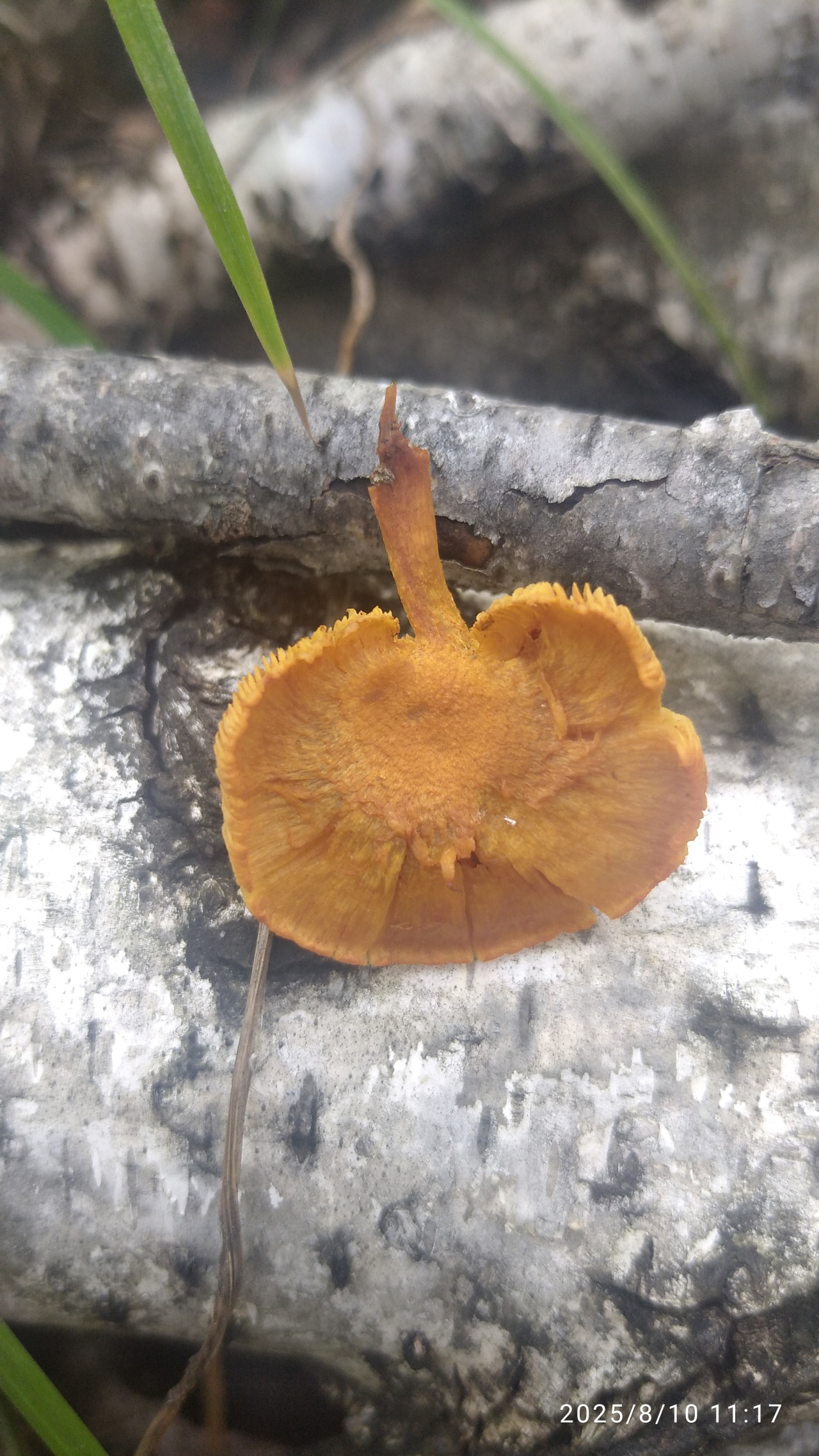 Описание гриба: Иркутск, лев. бер. р. Ангара, Академгородок, смешанный лес, на березовом пне. Шляпка 3 — 3.5 см диам., на поверхности (ближе к центру) шероховатая от мелких, оттопыренных «чешуек». Ножка тонкая. Собран по-одиночке, но явно, растет группками. Для гимнопила уж очень субтильный и растет на древесине лиственных пород; на тубарию тоже не дотягивает… Коллеги, как считаете, что за гриб? Я собрал гербарные образцы. Могу микроскопировать пластинки на предмет спор, цистит/базидий и проч., что потребуется для определения.