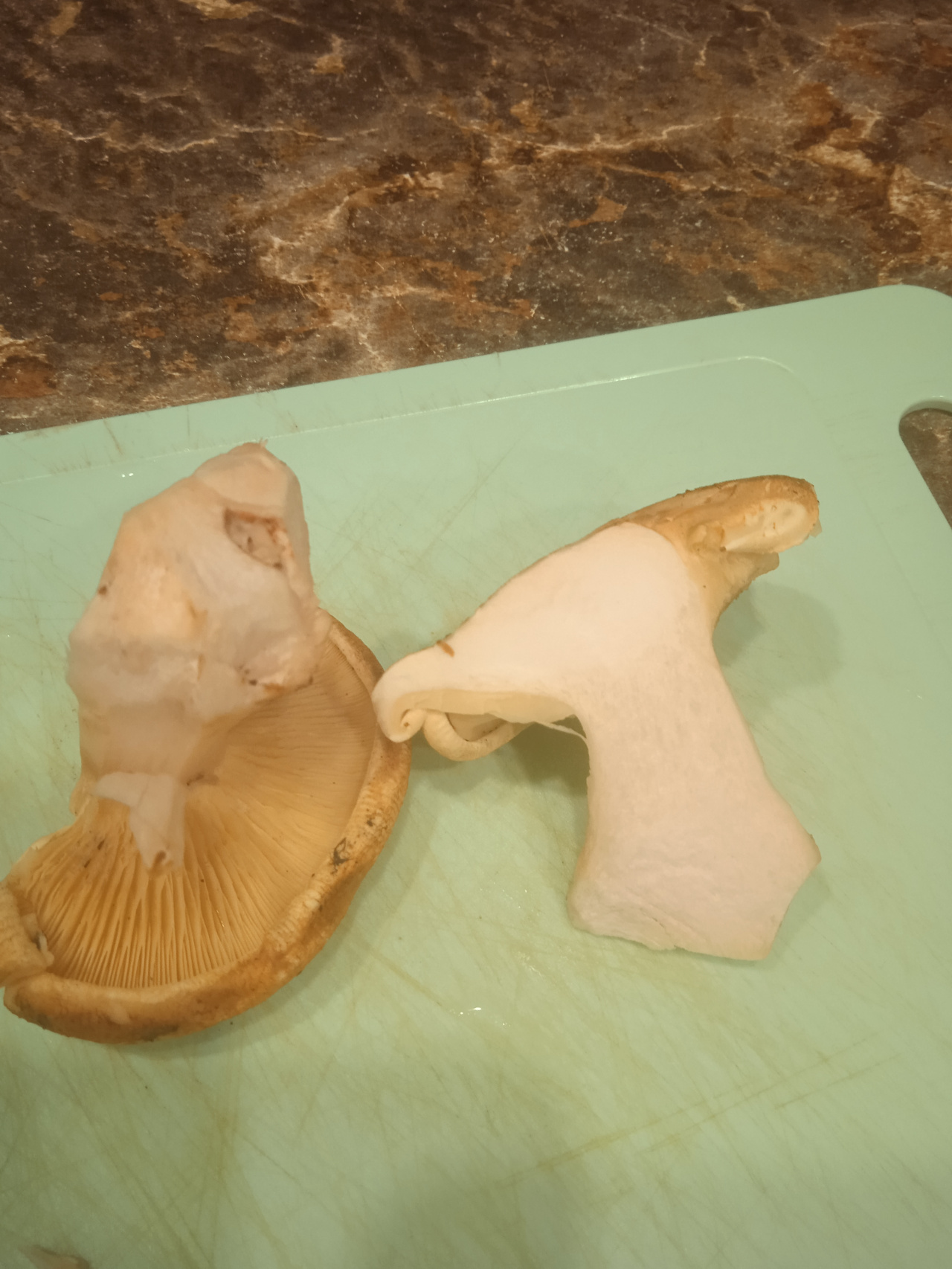 Описание гриба: Твердый, похож на белый гриб, но пластинчатый, шляпка светлокоричневая, ножка белая