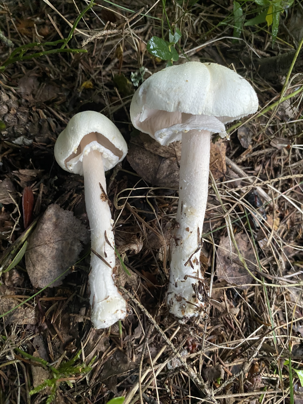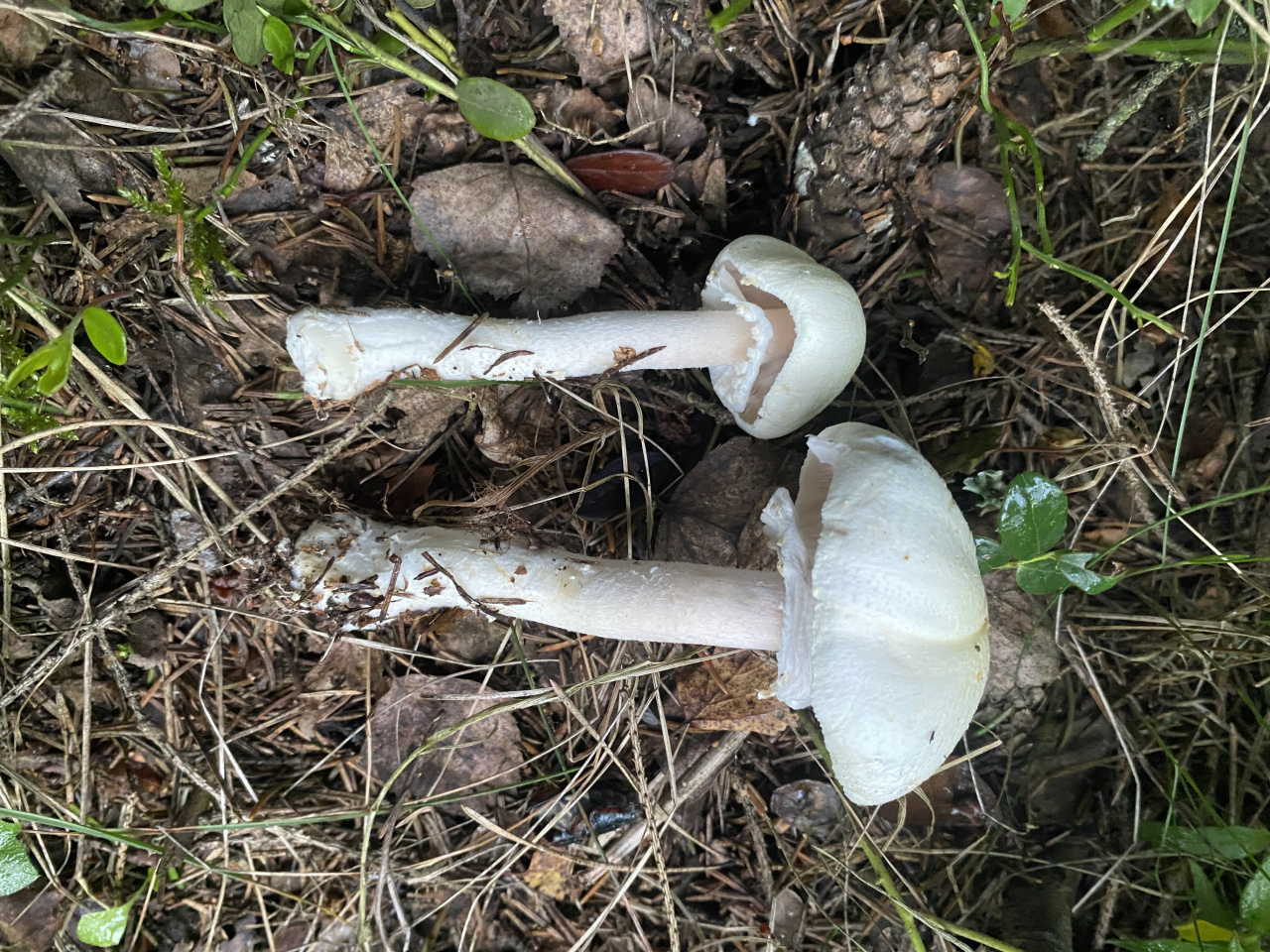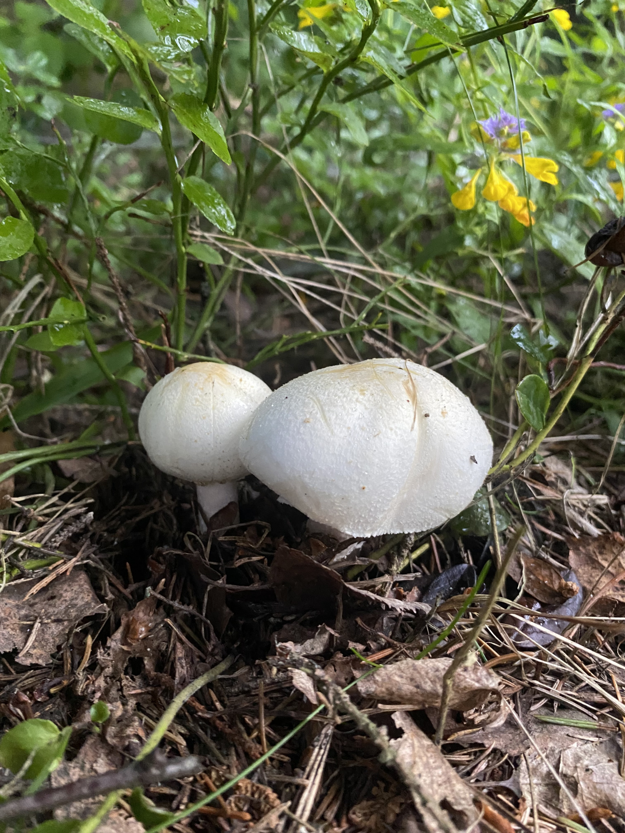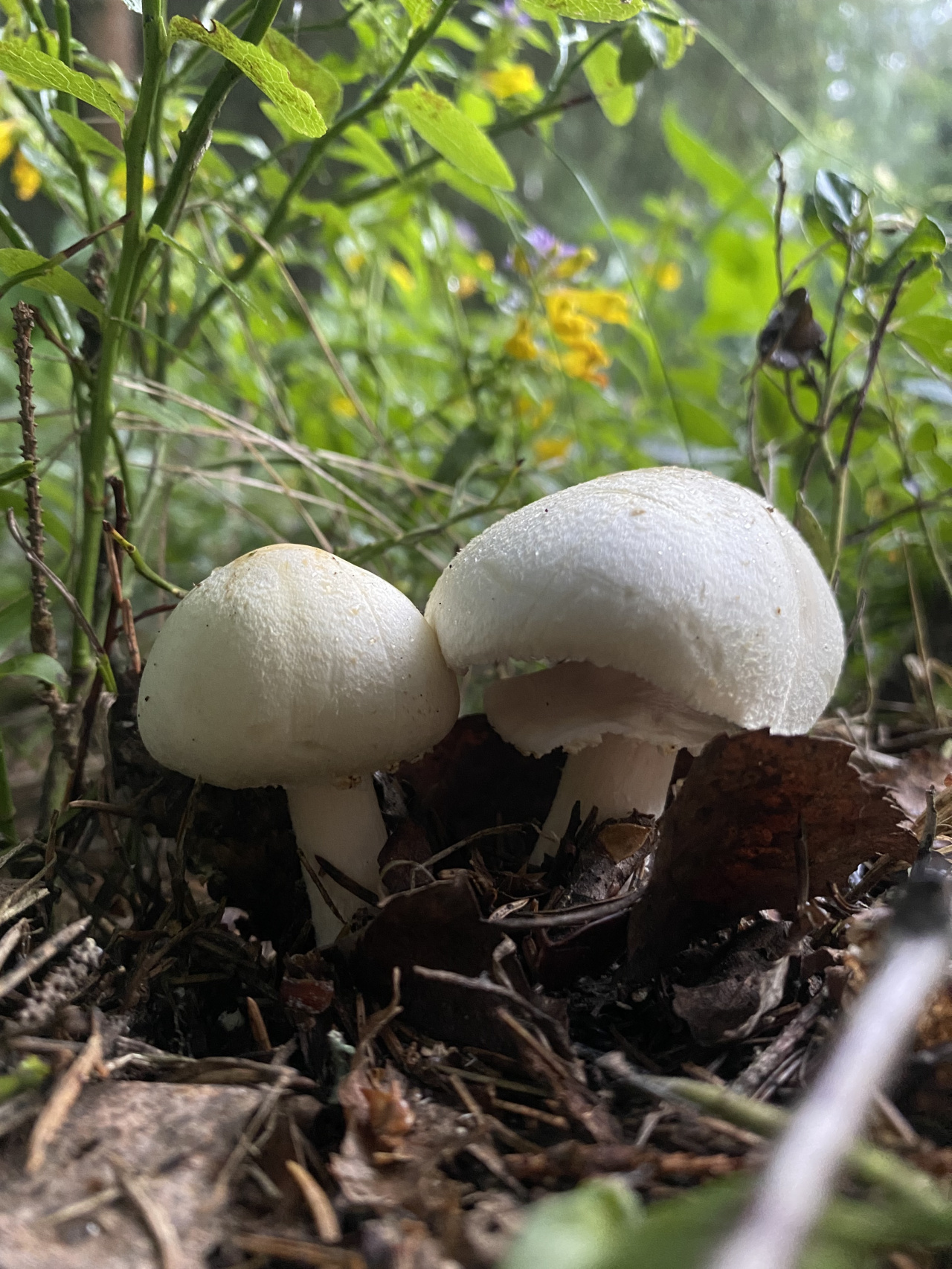 Описание гриба: Грибы росли на окраине смешанного леса (в основном ели и сосны, немного берез). Пластинки со слабо розовым оттенком. Вольвы не увидела. При повреждении шляпки еле заметный желтый цвет. Запаха не было никакого. Накануне шел дождь. Думаю, что это какие-то шампиньоны. Помогите определить грибы.