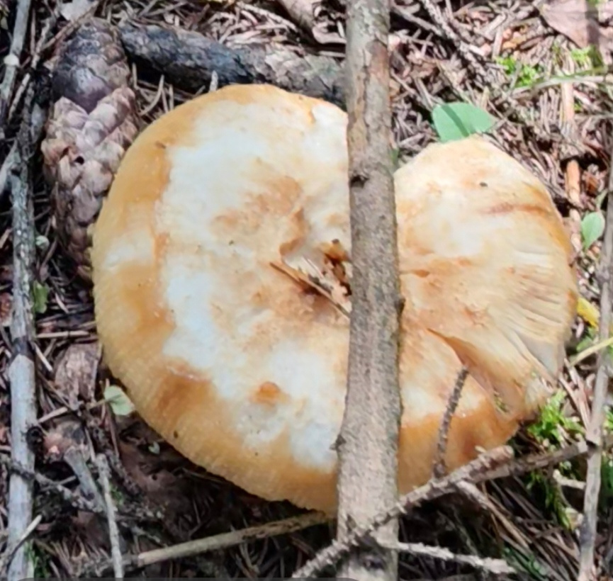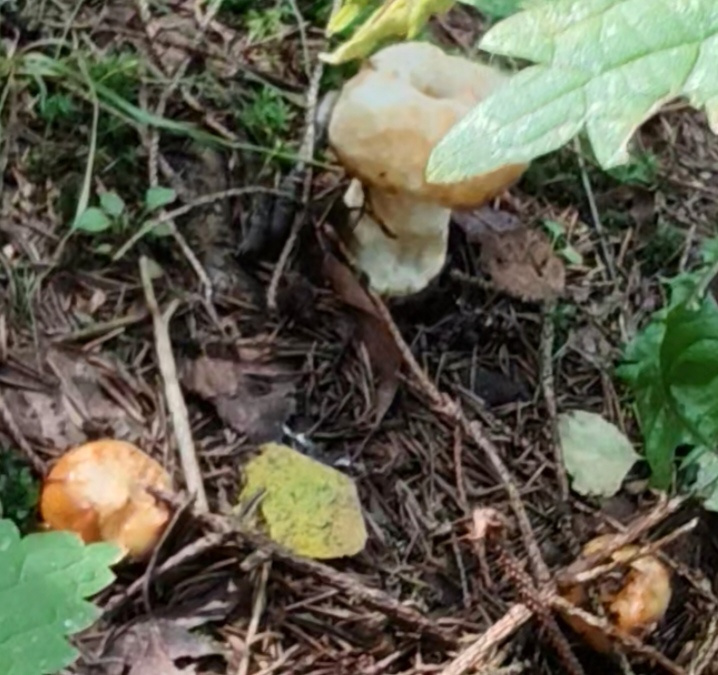 Описание гриба: В Подмосковье, в хвойных лесах, огромное количество этих грибов, пластинчатые под шляпкой, белый ствол и коричневая очень скользкая шляпка. Из под хвои показываются круглые, как шарики (с 5руб. монету), шляпки, по мере роста шляпки распрямляются. Крупные экземпляры с ножкой до ~6см и шляпкой до ~10-15см. Все грибы сильно об’едены слизняками (середина ножки и шляпки, как бублик и верхний слой шляпки поеден)