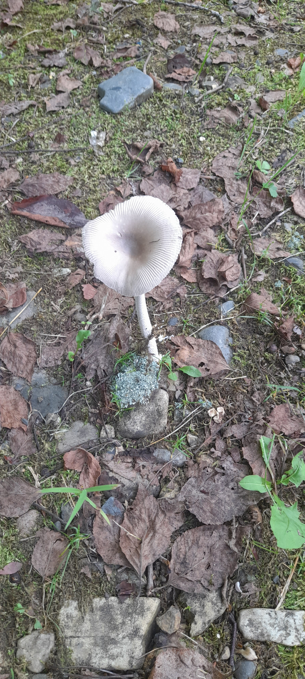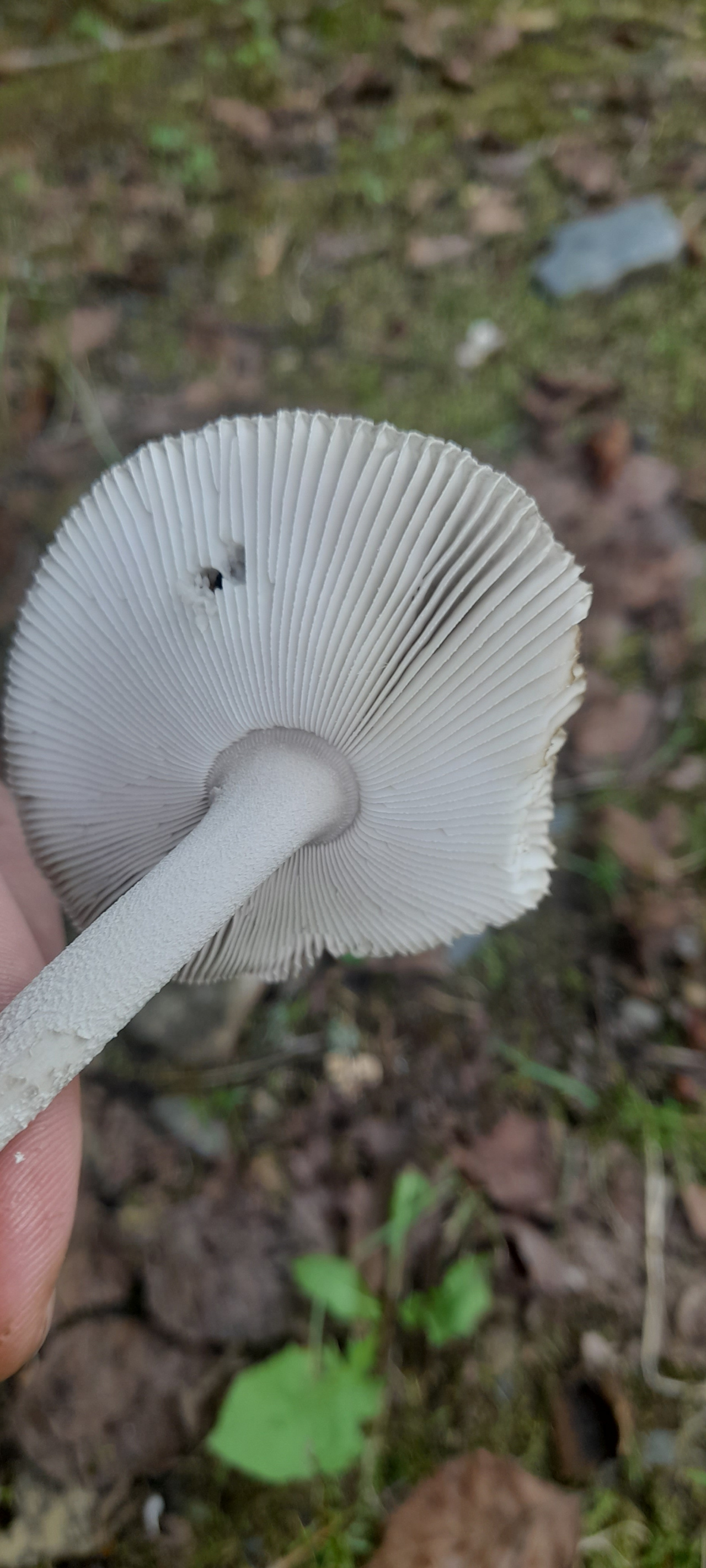 Описание гриба: Похож на поганку, серая или светлая шляпки и длинная ножка