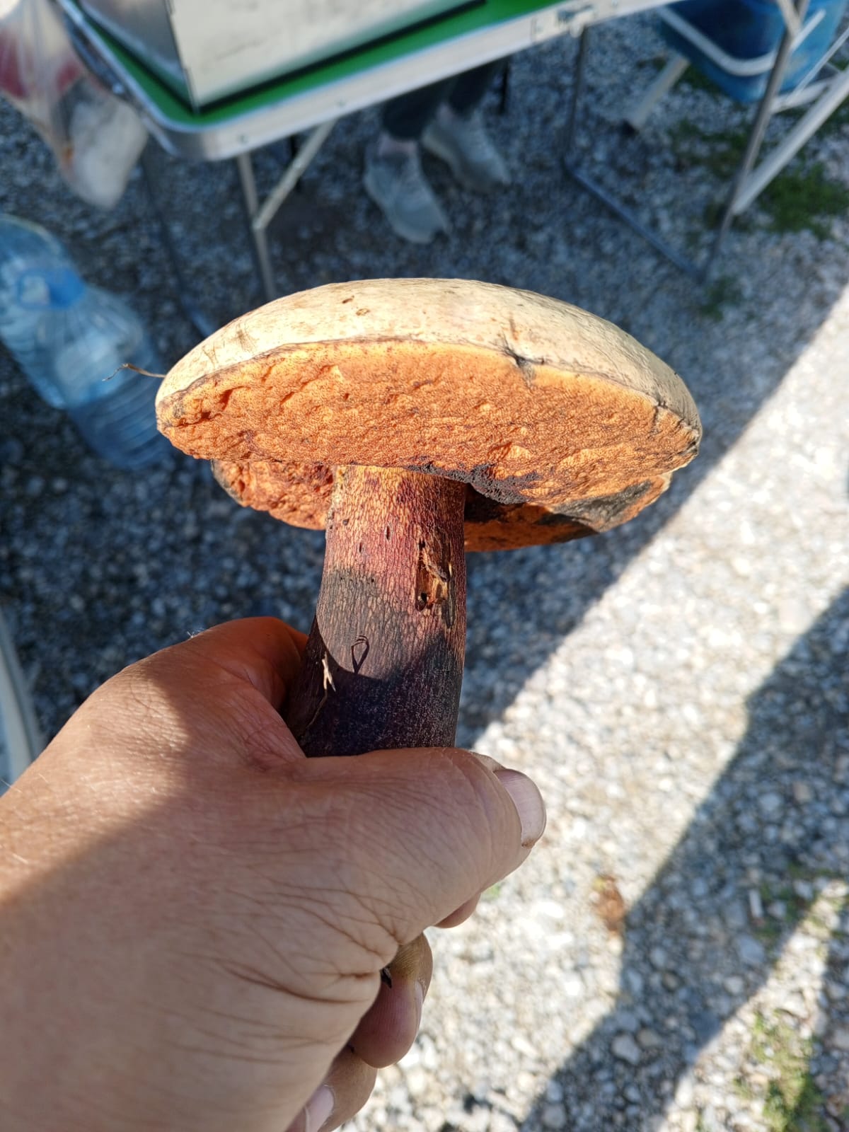 Описание гриба: Найден в сосновом лесу Оренбургская область. Если поцарапать шляпку — появляется фиолетовый налет