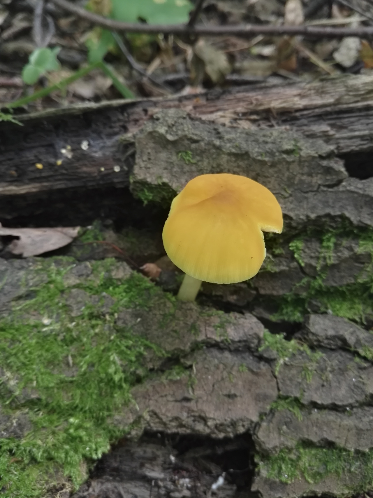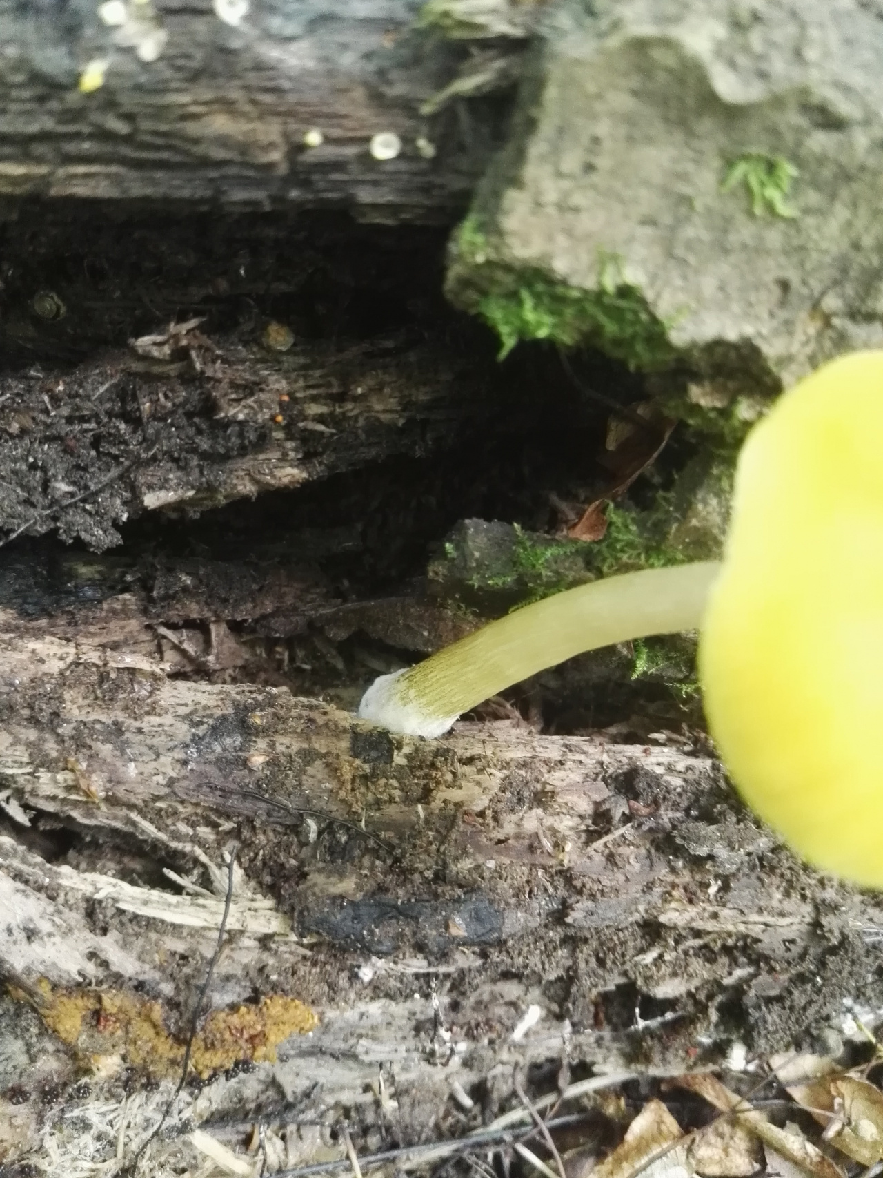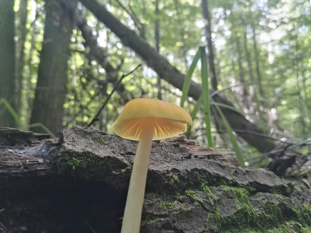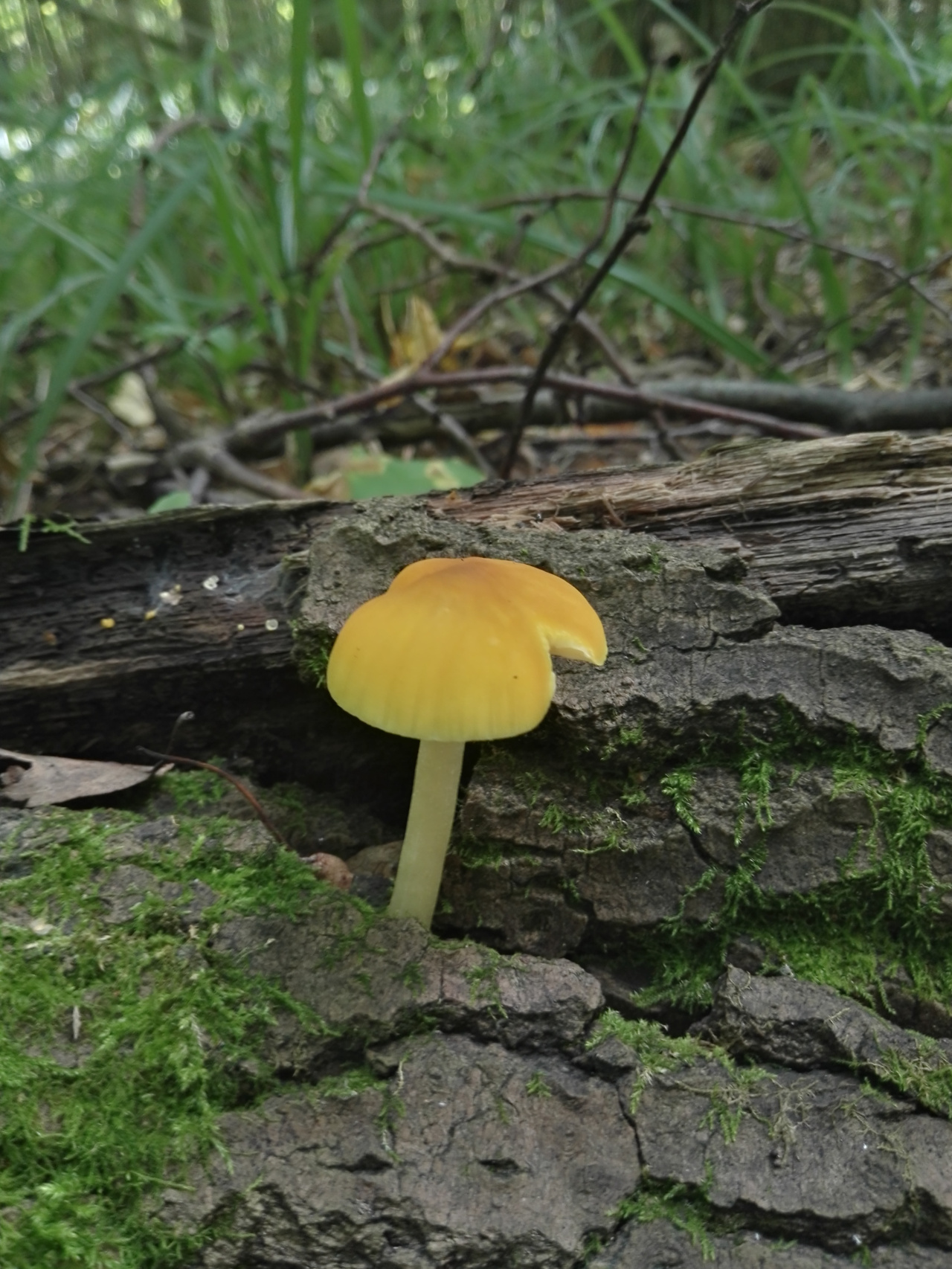 Гриб найден в лиственной части леса, на поваленном стволе дерева. Очень яркого цвета, заметно выделяется в лесу.