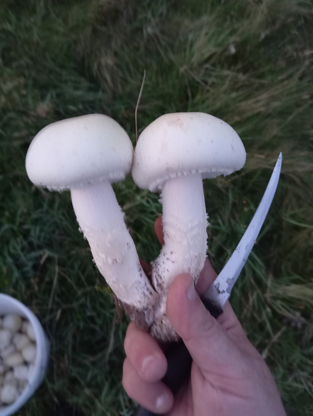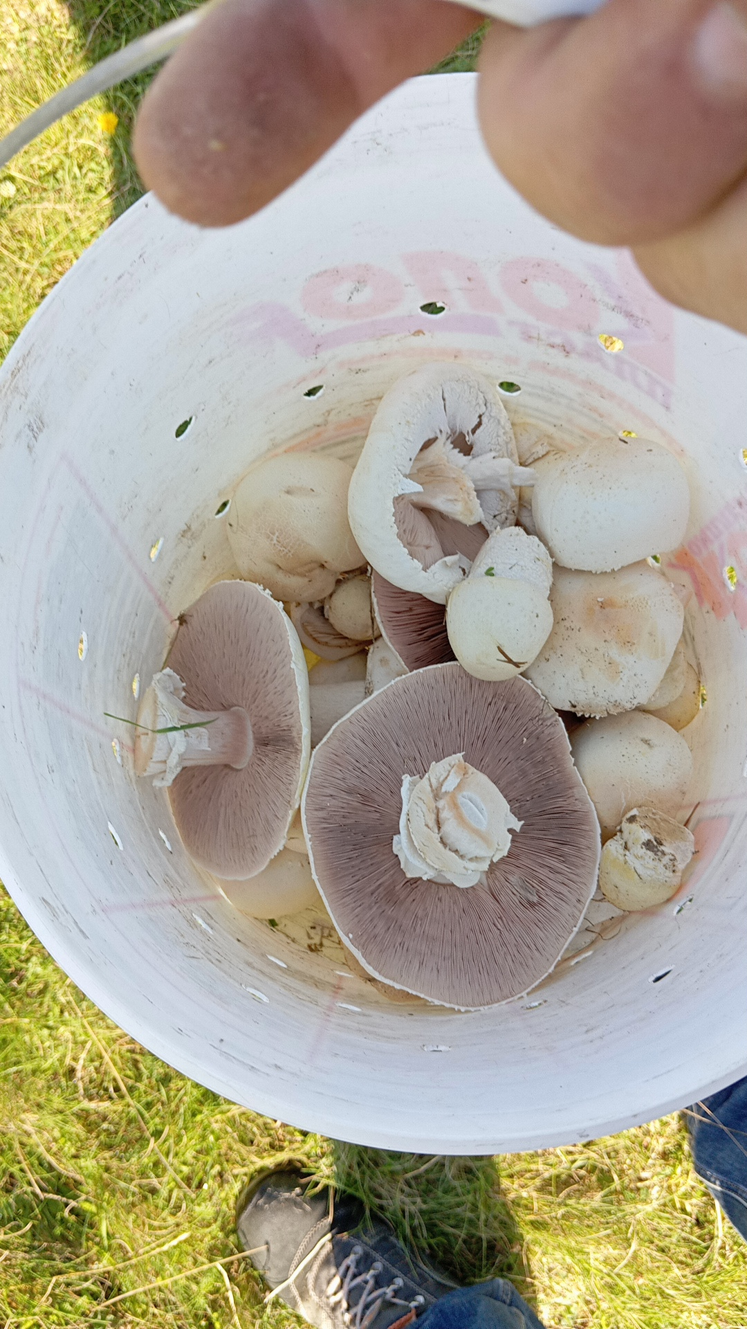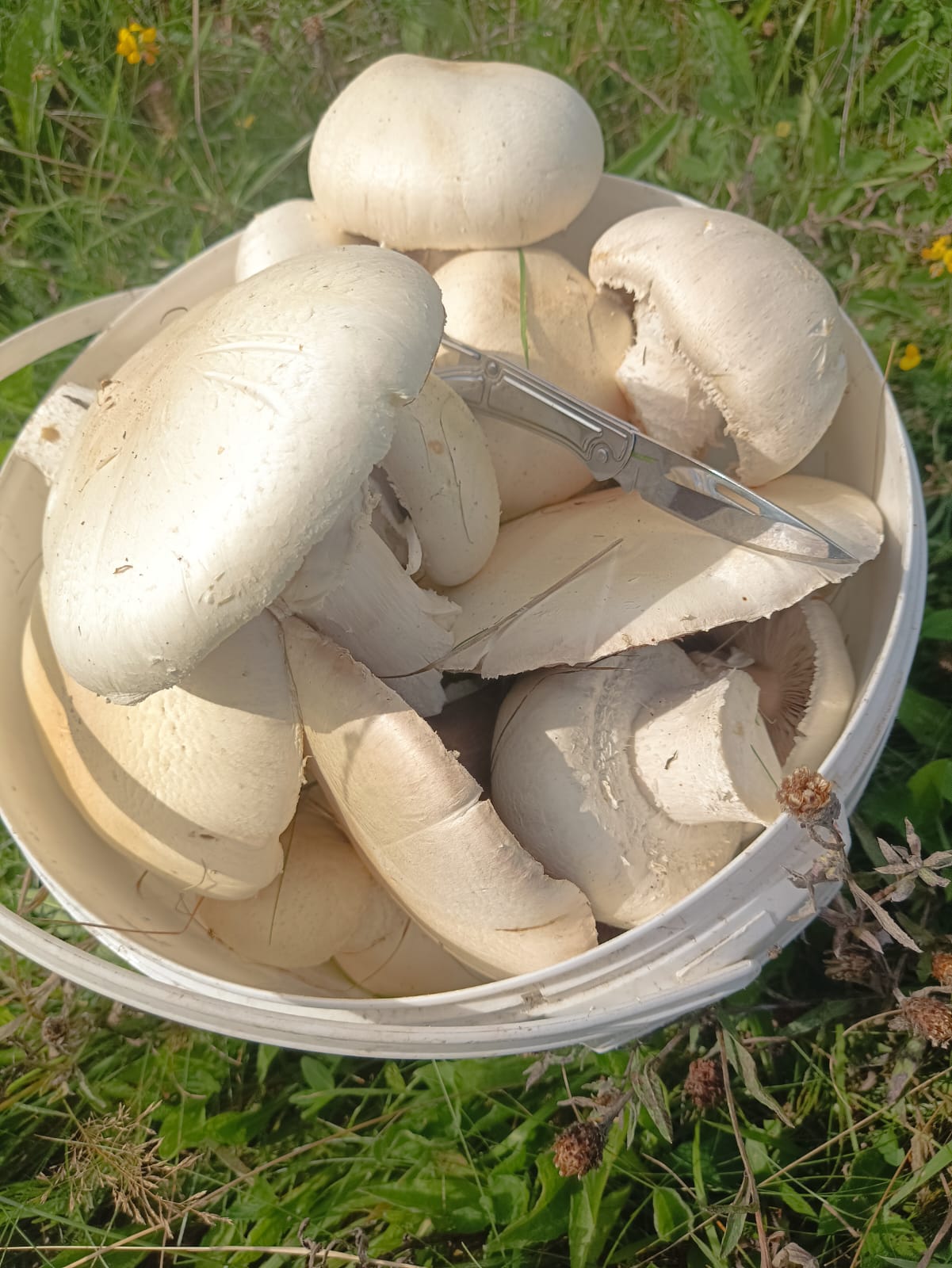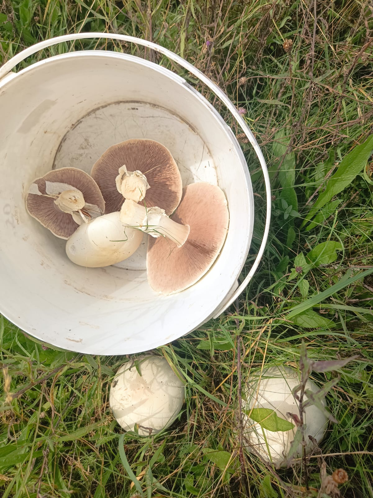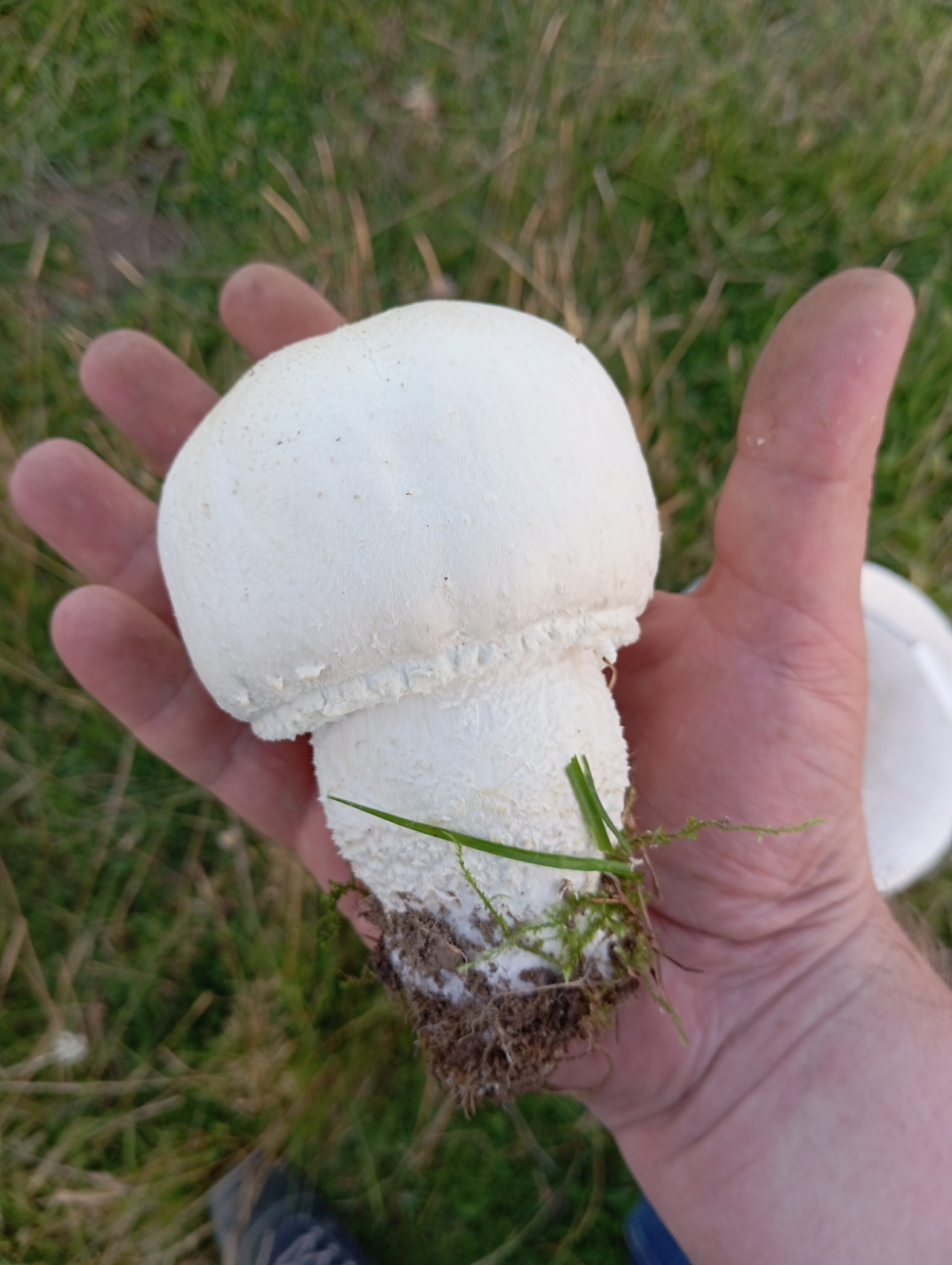 Описание гриба: Пожалуйста помогите определить. Похож на шампиньоны. Но смущают размеры. Переростки до 30 см в диаметре.