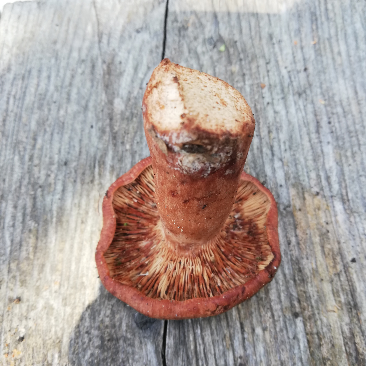 Описание гриба: Гриб собран в Красноярском районе Самарской области (около п. Новосемейкино), в лиственном лесу, около дуба, запах приятный, на шляпке выделялись небольшие белые капли млечного сока, которые цвет не изменяли.
