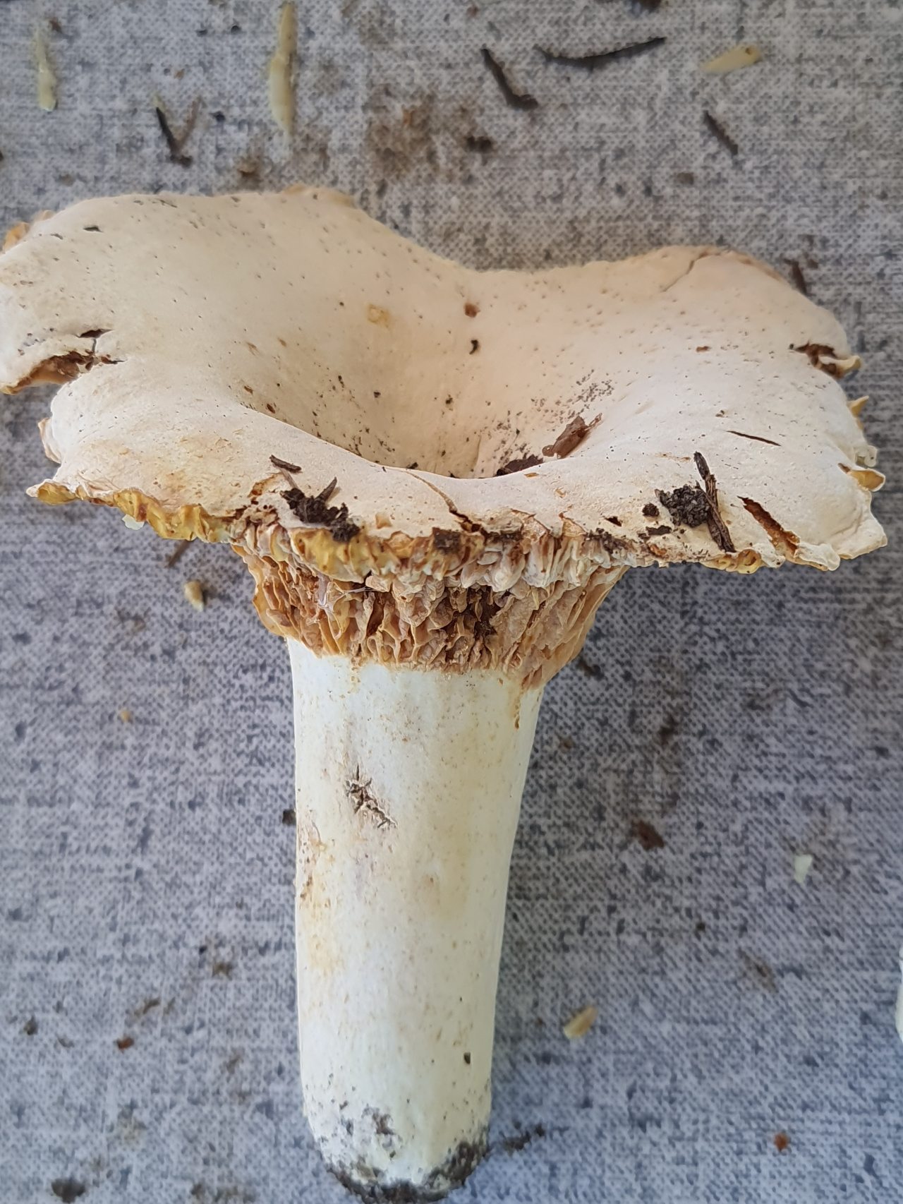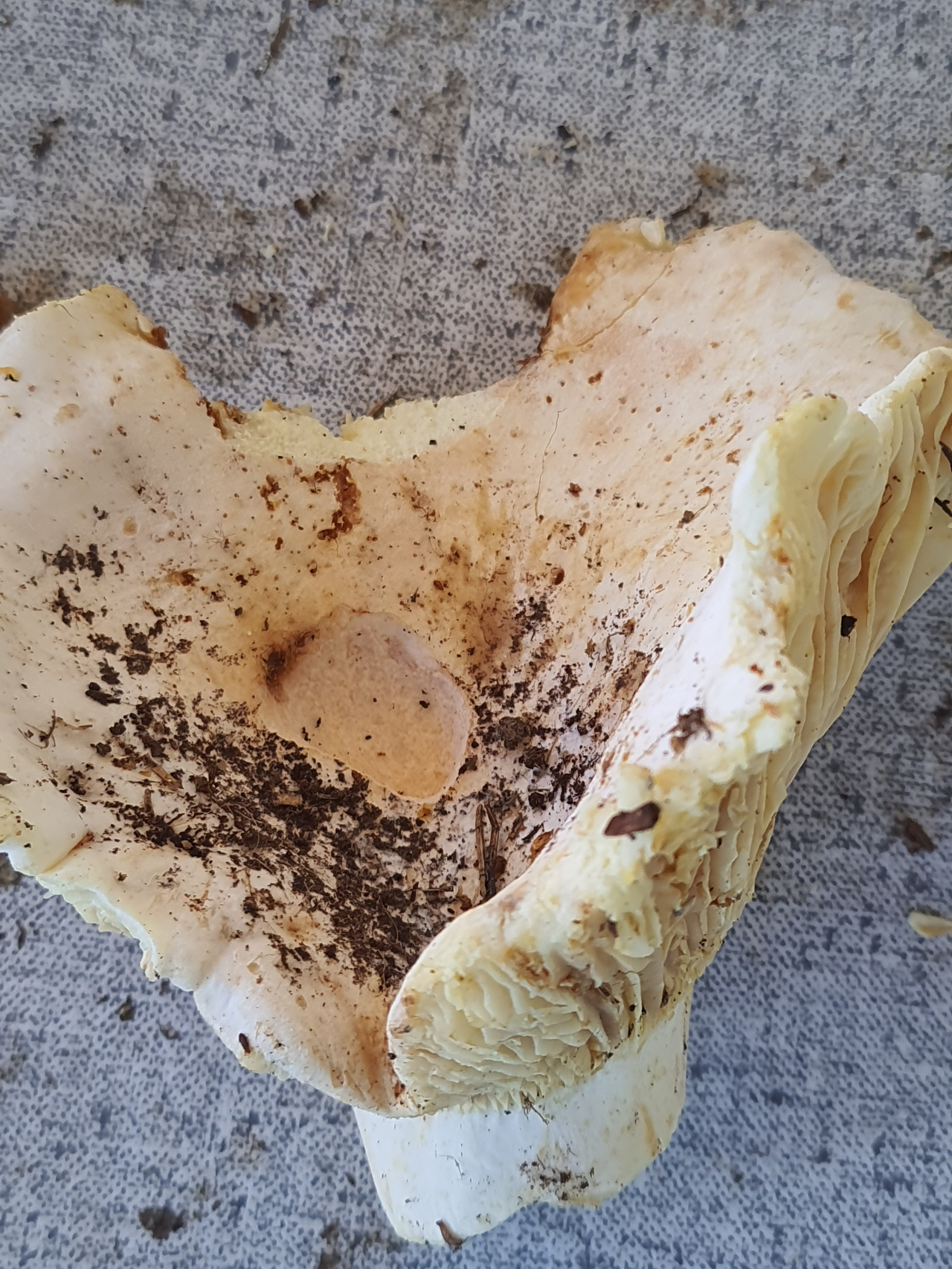 Описание гриба: как очень большая лисичка, срез белый сухой, запах грибной,